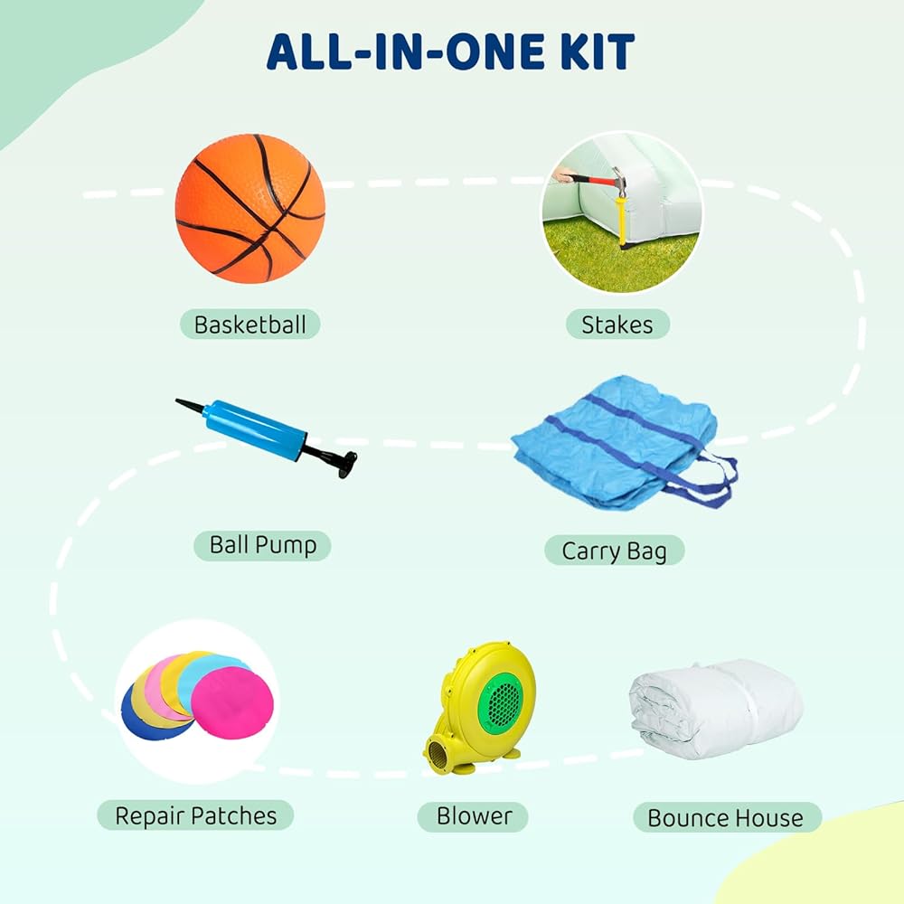 【Lots to Fun, More than Bounce】- The bouncing house adds slides and basketball Hoop to make it more fun for kids. The slides and baskets included in the design not only exercise their throwing and crawling abilities, but also keep kids away from electronics.
