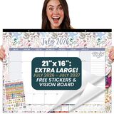 bloom daily planners Desk Calendar 2025-2026 - Academic Year Large Wall Calendar (July 2025 - July 2026) - 21" x 16" Desktop & Hanging Monthly Planner with Stickers for Home or Office - Holiday Icons