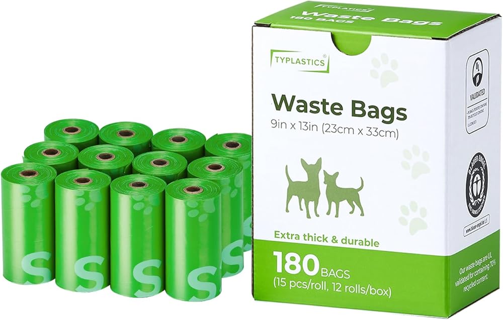 Typlastics Poop Bags for Dogs,180 Bags, Waste Refuse Cleanup, Doggy Roll Refills for Outdoor Puppy Walking and Travel, Leakproof and Tear Resistant, Unscented, 12 Pack of 15, Lime Green