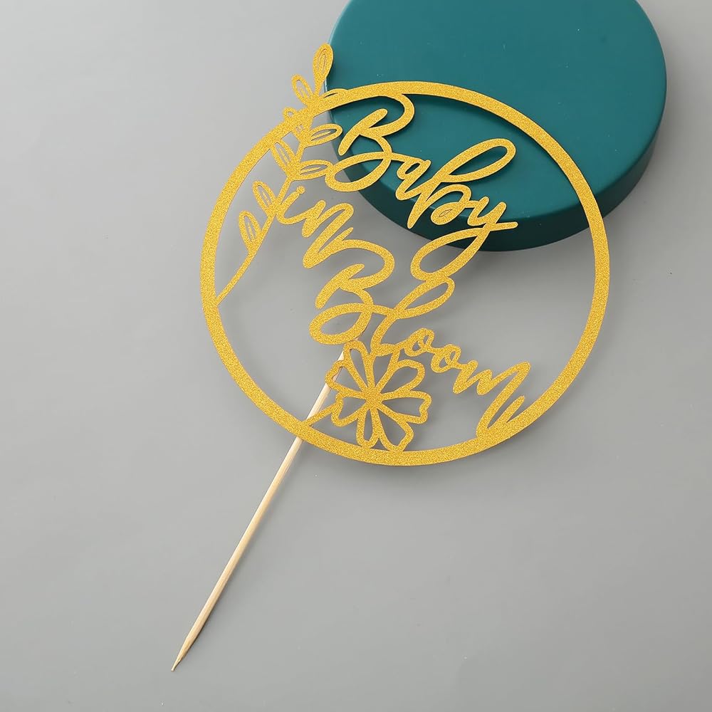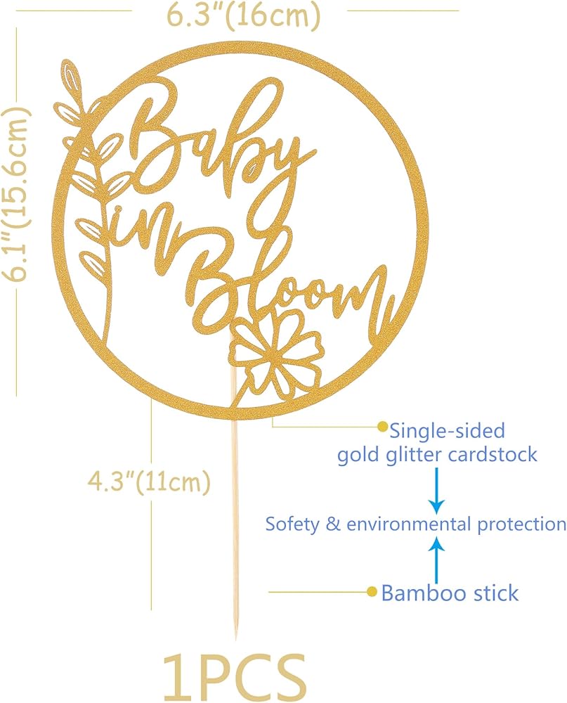 Good Size: Gold glitter Baby in Bloom cake toppers measures 6 inches,fits most sizes and styles of birthday cakes, cupcakes, desserts and more