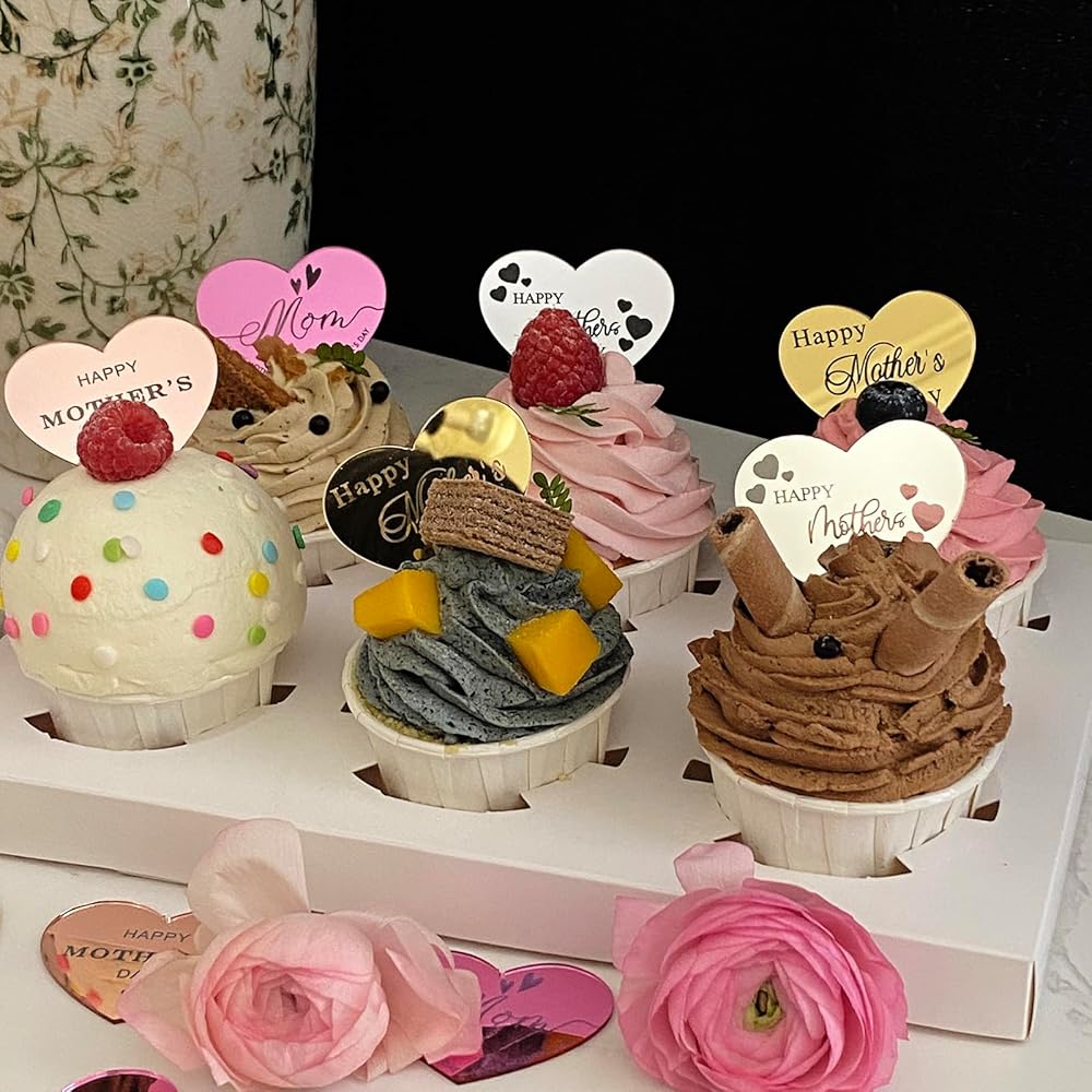 Mirror disign: Our heart shaped happy mothers day cupcake topper feature a high definition mirror design with double sided reflections and vibrant colors, perfect for Mother's Day party decorations!please peel off the clear protective film on both sides before use