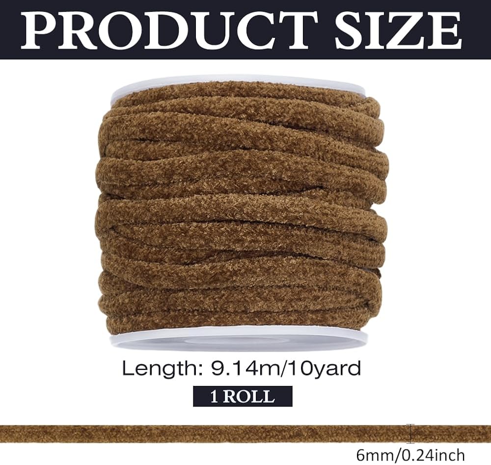 Package Included: You will receive 10 yards chenille choker cord round tubing cord, size about 6mm in diameter, about 10.00 Yards(9.14m) with spool.