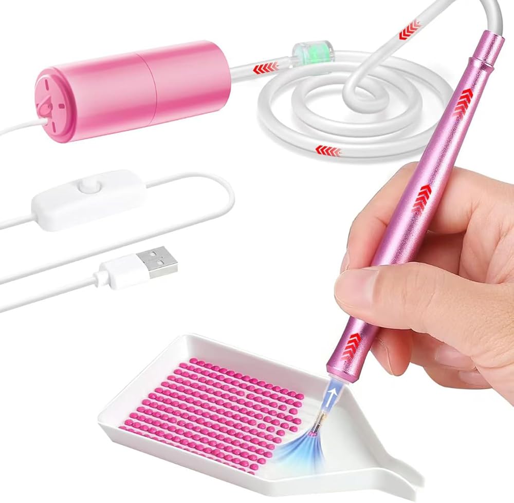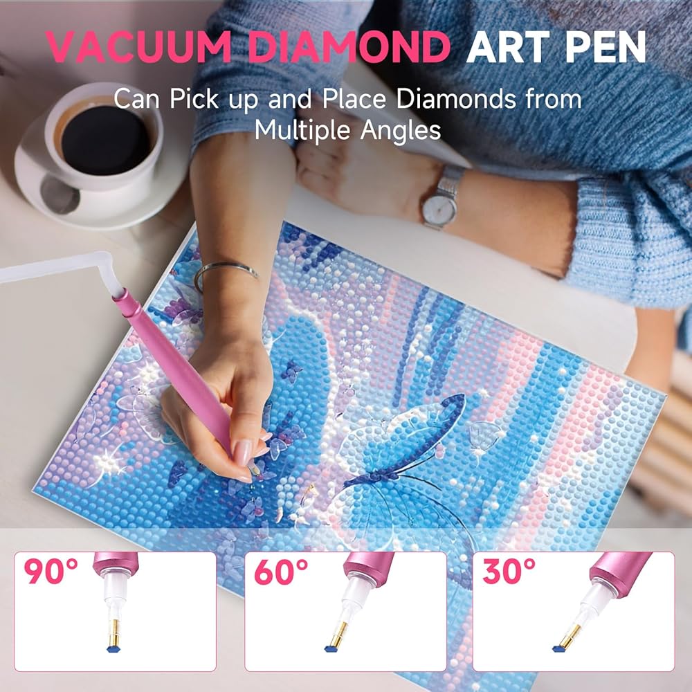 ⚡[Effortless & Powerful Performance]: No assembly needed—just plug in and create! This vacuum diamond art pen delivers instant strong suction without repeated wax dipping. Built-in filter prevents debris clogging, making it 2X faster than regular diamond art pens. Ideal for large projects!