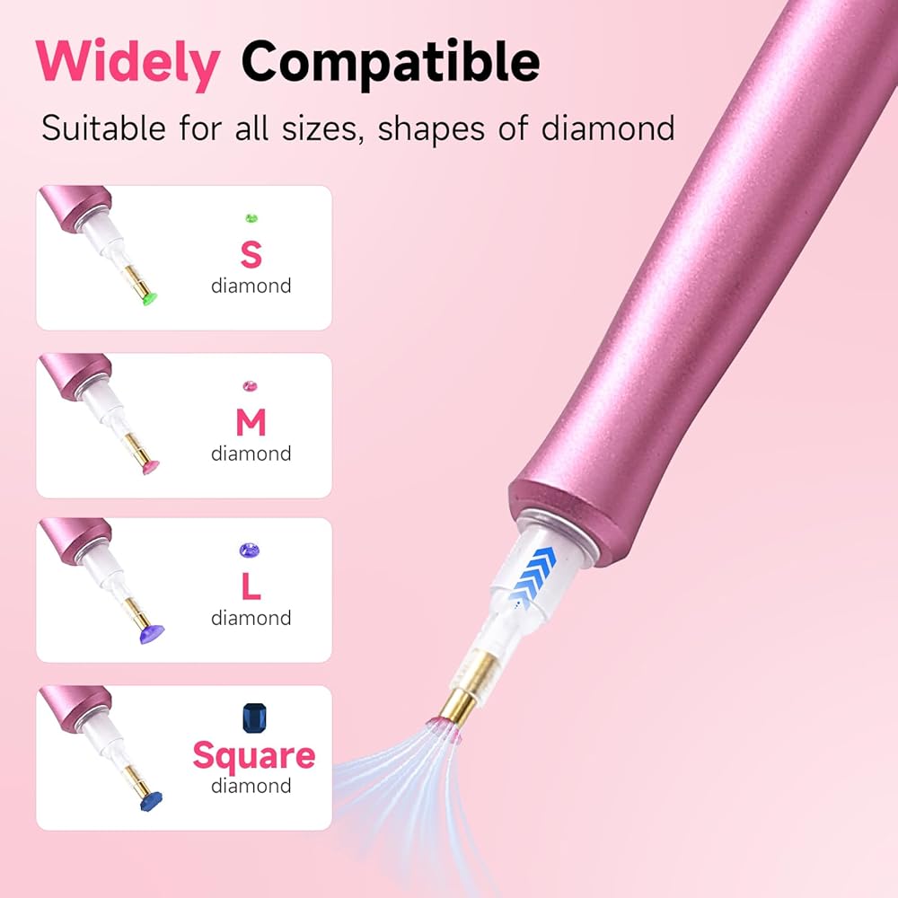 🔮[Universal Compatibility for All Drills]: Works flawlessly with 2.5mm-5mm diamond art accessories (round/square/AB drills). The E-painter for diamond painting auto-adjusts suction strength to hold different sizes securely—no more dropped gems! Great for multi-size mosaic projects.