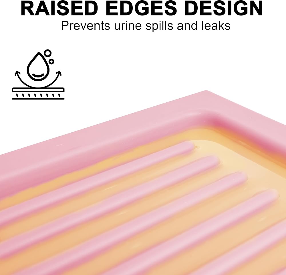 Urineproof:Raised edges prevent urine from spilling over the mat, and the waterproof silicone surface prevents urine from soaking through to your floor.