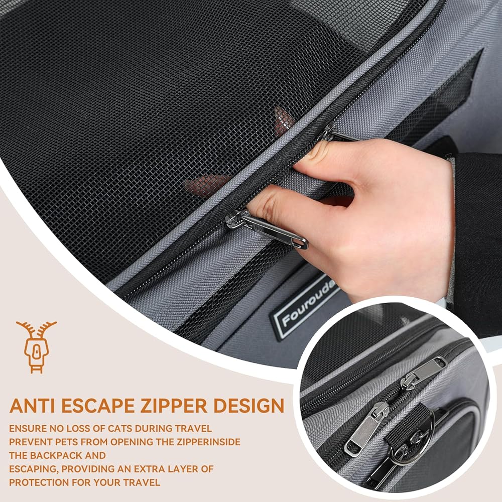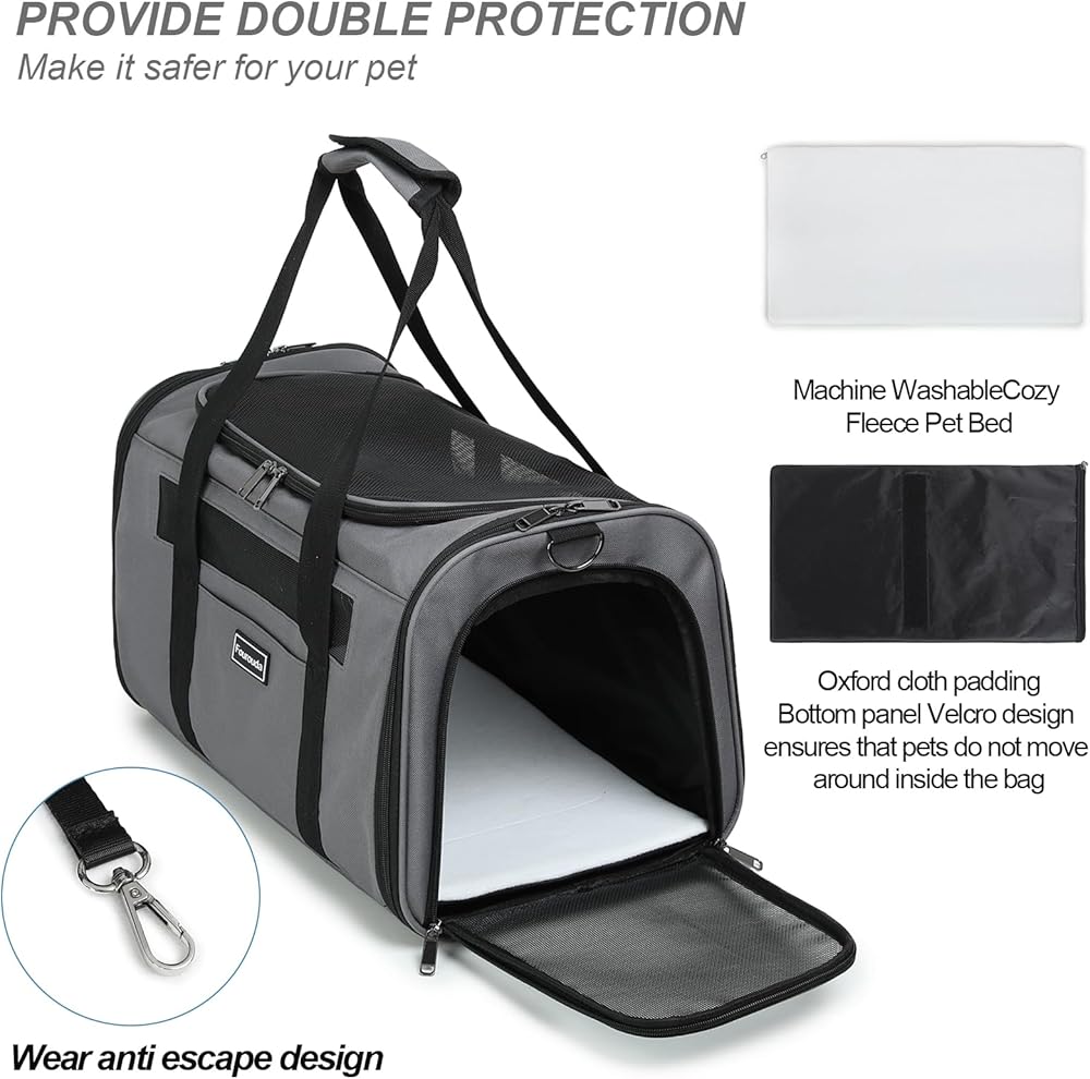 【SELF-LOCKING ZIPPER】This pet travel carrier is secured with a non-slip zip, so your pet can't escape by unzipping the zip from the inside, which will ensure your pet's safety. dog bags for traveling has metal zippers on the top and side entrances, durable and not easy to deform, it allows your pets to enter and exit easily. The cat carrying case is equipped with an anti-escape safety buckle, which can effectively prevent pets from accidentally falling.