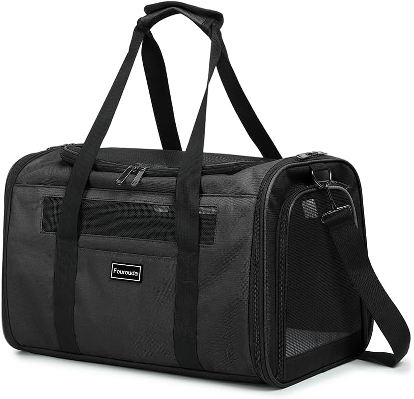 Airline Approved Dog Carrier.Cat Travel Carrier Dog Carrier Bag, Soft Sided Pet Bag up to 20 Lbs,Pet Carrier Soft-Sided Escape Proof with 4 Ventilated Windows (Black)