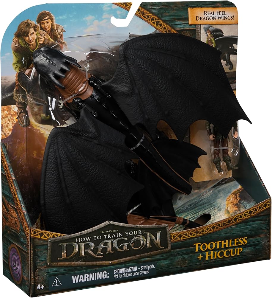 Dive into the legendary world of How To Train Your Dragon, with the Dragon & Viking action figure set. This dynamic duo of 13-inch Toothless and 3-inch Hiccup come to life with authentic movie styling and movable limbs, allowing for imaginative play and epic storytelling with real feel dragon wings. Kids can attach Hiccup to Toothless using the saddle pegs before recreating their favorite scenes or inventing new adventures and quests. Designed for sensory play and pretend play, these dragon toys encourage creativity and heroic role-playing. This set comes with everything you need to start your dragon adventures, making them ideal pretend play toys for ages 5-7. Whether it's a birthday, holiday, or any celebration, this dragon figurine and viking toy are exciting options for young fans to inspire imaginative play and heroic adventures. Explore more thrilling adventures with Battle Dragons action figures, flying RC Toothless, dragons board games, toy figures & playsets, Vikings figurines, stuffed animals and plush toys. (Each sold separately.)