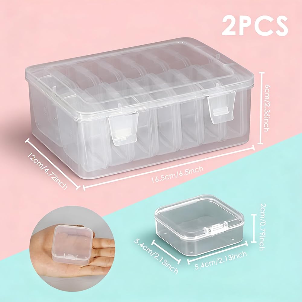 [Large Capacity & Ample Quantity] Our big bead storage container measures 16.5x12.7x6cm and comes with 12 mini storage boxes(5.4x5.4x2cm), which are large enough and sufficient to meet your daily needs, and can be placed in drawers or cabinets without taking up too much space.