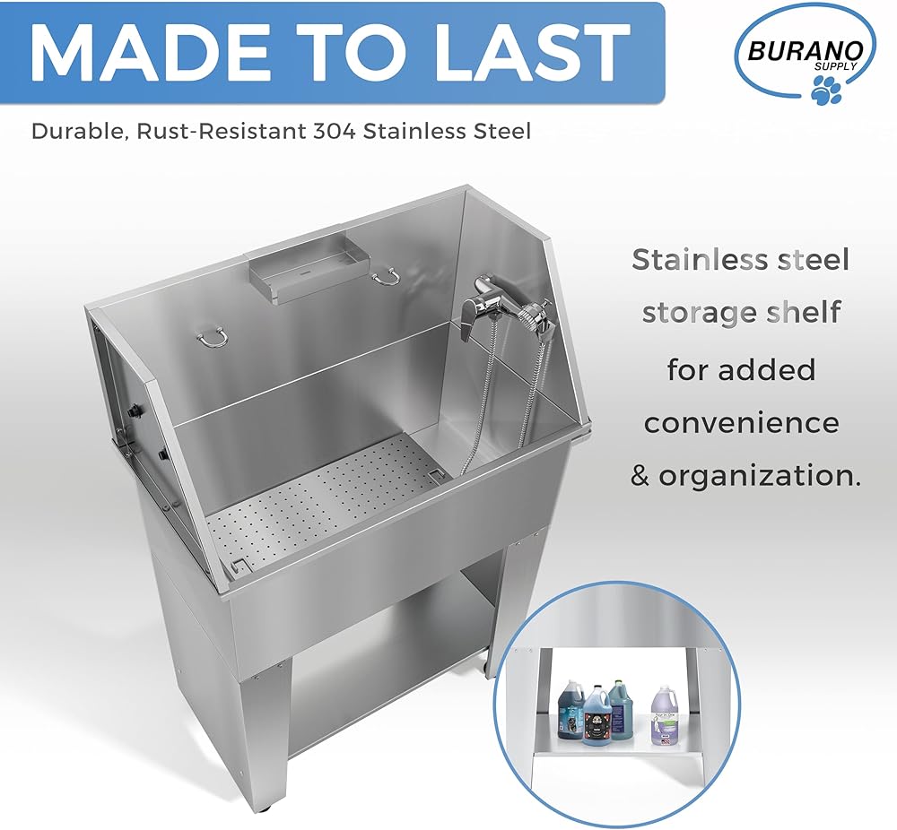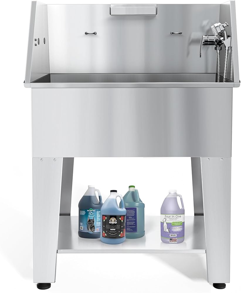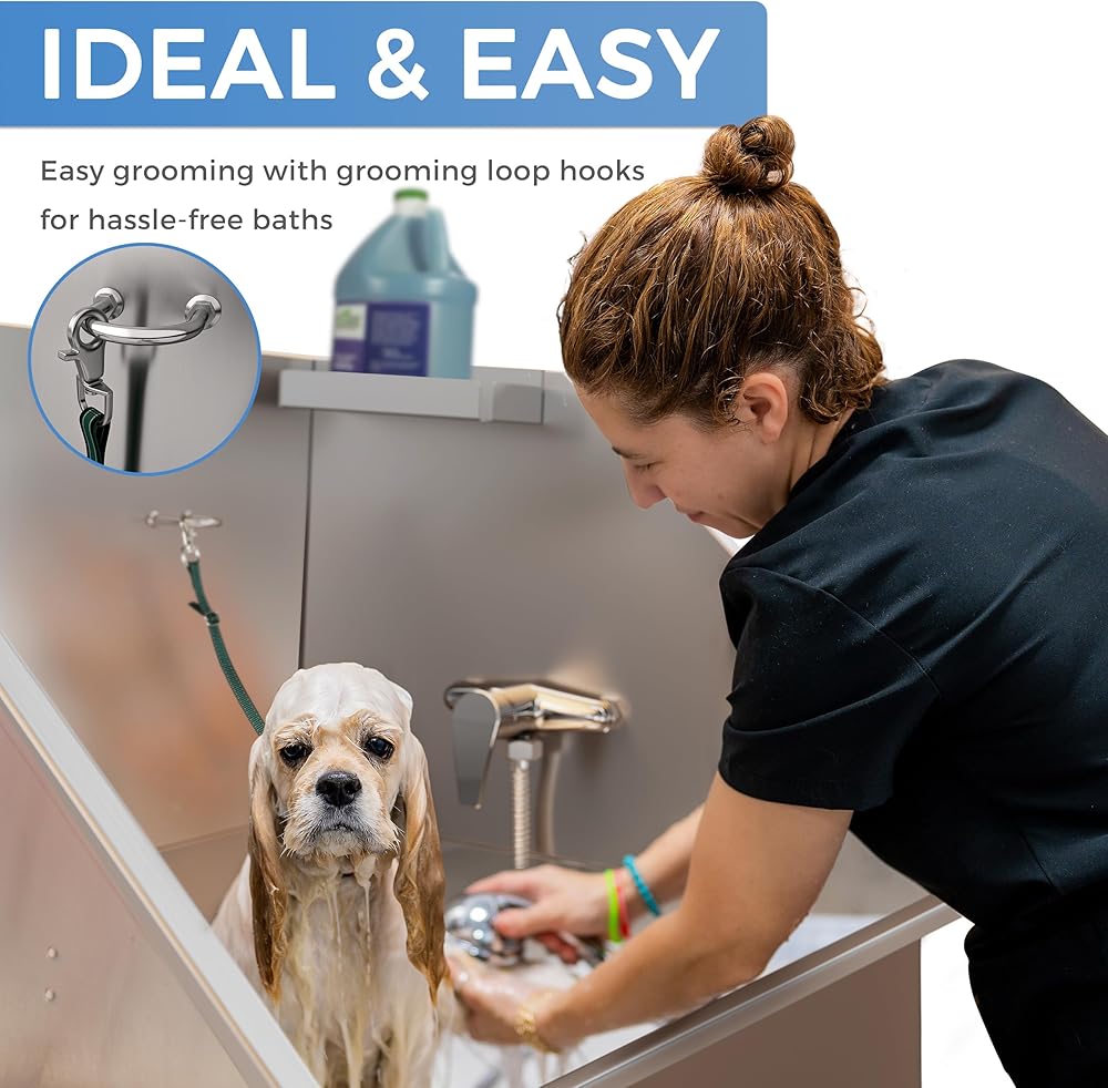 SPACIOUS & EASY TO MAINTAIN – SAFE AND ORGANIZED! This grooming tub offers a spacious interior, making it easy to bathe pets of all sizes with comfort and control. With its smooth stainless steel surface, cleanup is quick and effortless—keeping your grooming space neat, clean, and professional at all times.