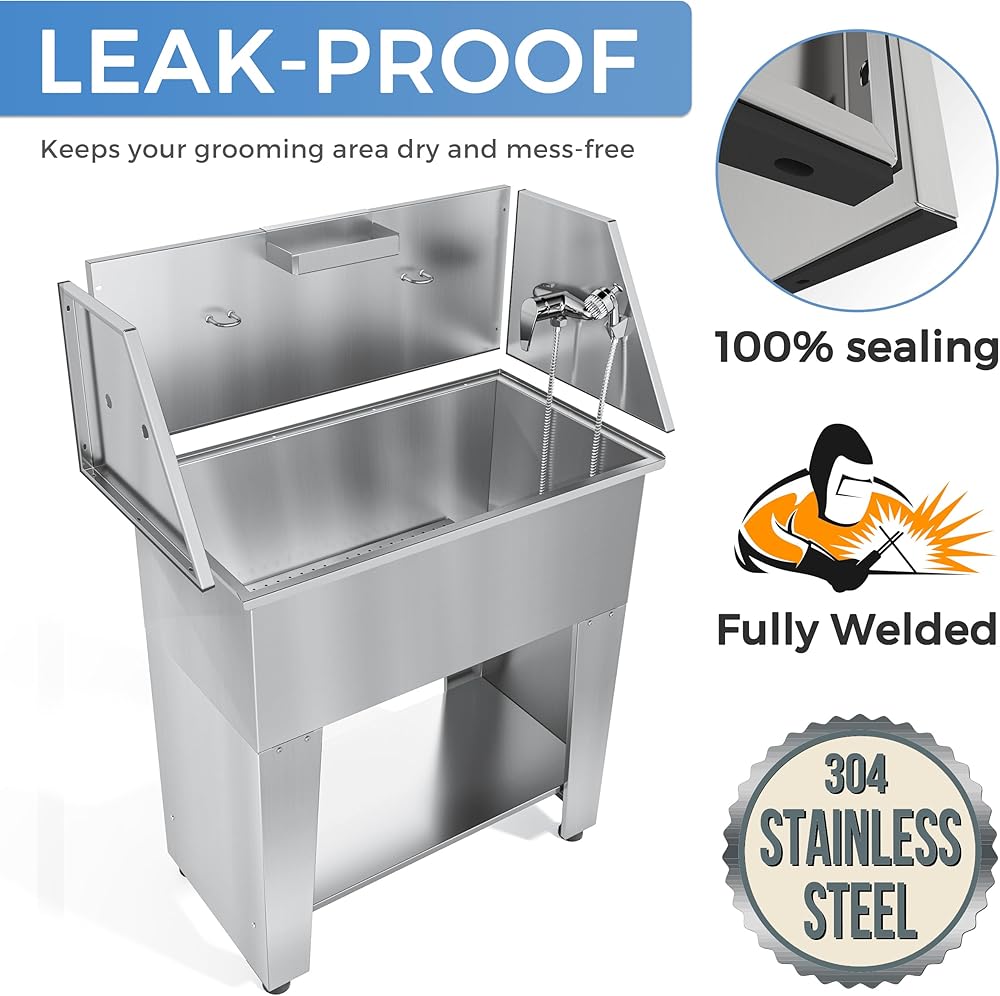 BUILT TO LAST – BATHING YOUR PET HAS NEVER BEEN EASIER! Looking for a heavy-duty grooming solution? Our Stainless Steel Dog Grooming Tub is crafted from rust-resistant 304 stainless steel, designed for long-lasting performance. Its fully welded, leak-proof construction and smooth, easy-to-clean surfaces make it ideal for home use, professional grooming salons, or pet care businesses. Enjoy a professional-grade bathing experience every time!