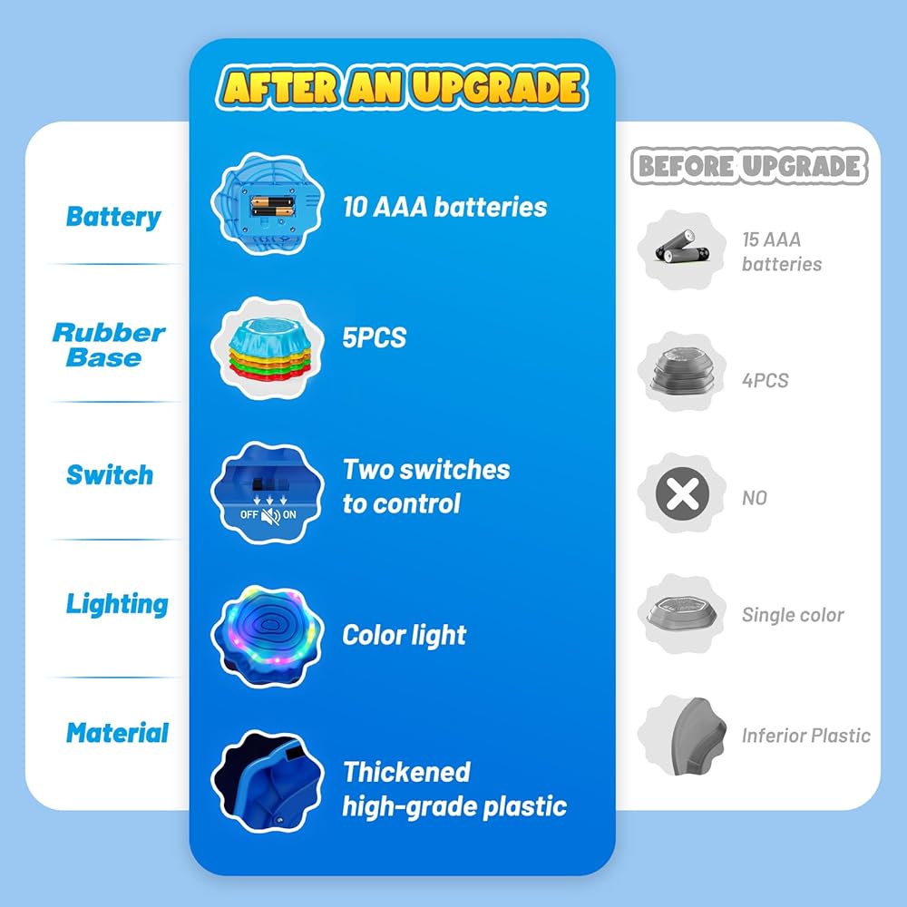6 Light-Up & Musical Stones - The light-up stepping stone feature flashing colorful lights and musical notes sounds that trigger music and lights when gently stepped on, turning play into a fun musical time. The Flooyes Stepping Stones toys combines music and light design to promote sensory development and creative play experiences for toddler. Note:Each toddler stepping stone requires two AAA batteries (not included).