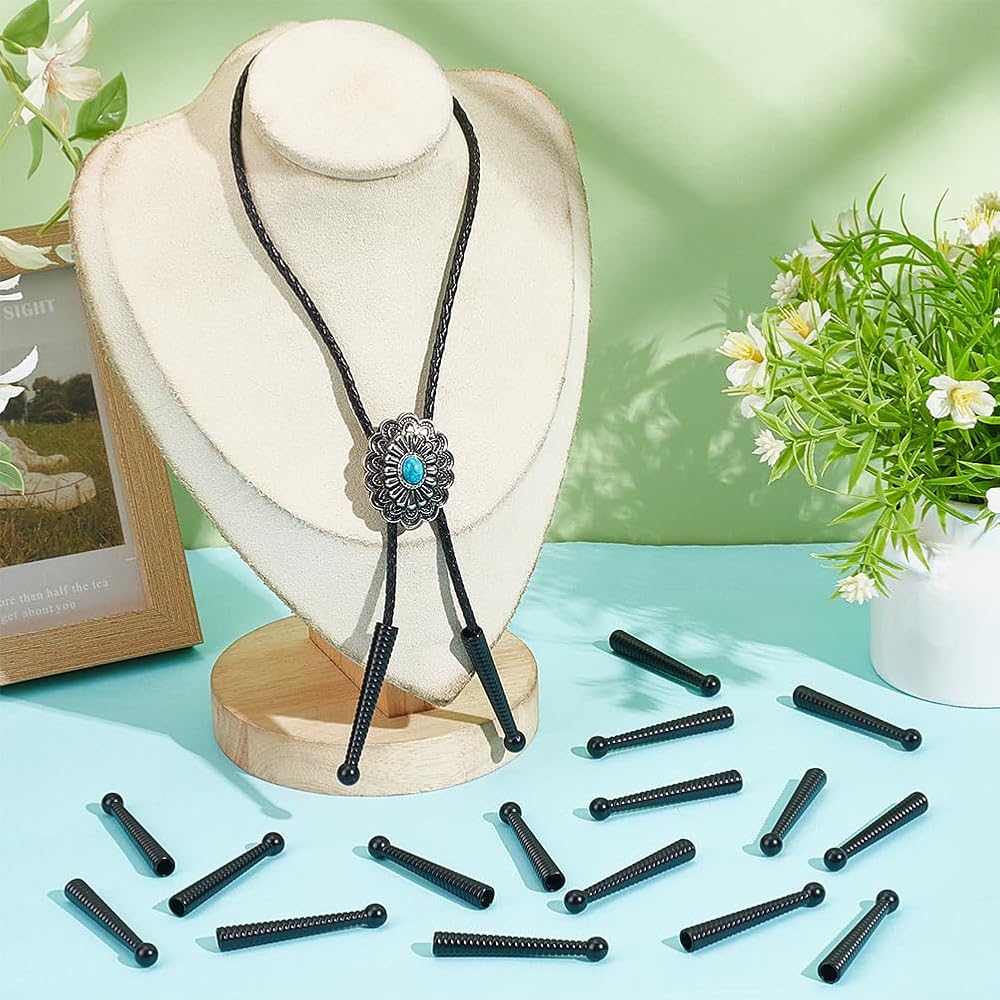 NBEADS 20 Pcs Bolo Tie Tips, 2 Inch Long Cord Ends Caps Bolo Cap Buckle Replacement 5mm Bolo Tie End Caps Bolo Tie Findings for DIY Crafts Clothes Decor Design Making, Black