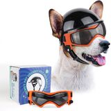 Dog helmet with clear goggles: PETLESO Small Dog helmet is composed of a hard ABS shell and transparent UV resistant glasses. 3/4 drop-down sun shield device, can be pulled up or down as needed, wide field of view, better air circulation.