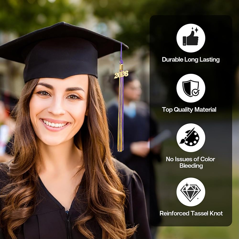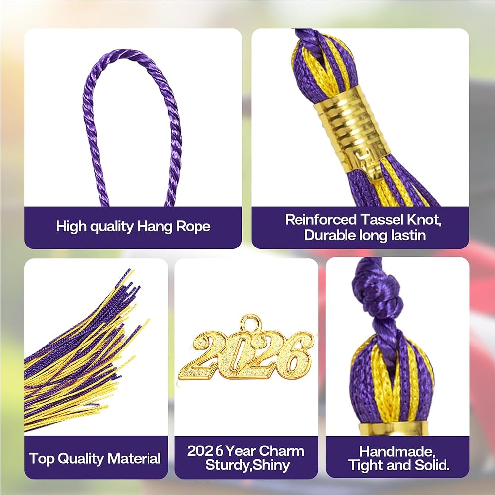 [Package Include & Size] 1 pcs graduation tassel with 2025 Year Plate.This graduation tassels length is 8.4 inches, the hang loop length is 6.7 inches. [High Quality]Our graduation cap tassel 2025 is made of high quality polyester fibre, it sturdy and resistant, soft ,safe and reliable to use and you will find that's a great grad tassels for your graduation cap. [Wide Application]The graduation tassel can be applied to graduation activities such as graduation photograph, graduation ceremonies and graduation party as preschool graduation tassels 2025,kindergarten graduation tassels 2025,kindergarten tassel 2025,2025 tassels for preschool. [Removable Year Plate]The year plate of our graduation tassels 2025 can be removed so our 2025 cap tassel 2025 can be used to other place such as bookmarks, gift tags, key chains or just hang on walls or cars for decoration.This class of 2025 tassel is designed to be kept and treasured by graduates and family for years. [Nice Graduation Gift & Decoration Choice]:This 2025 grad tassel comes with 2025 gold charm,convenient for you to add a touch of charm to your graduation ceremony, to witness your important achievement moment.Our 2025 tassle also a good 2025 graduation gifts for friends, sisters, brothers, classmates, etc. To express your good wishes and love, they will be very happy.