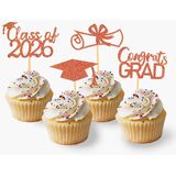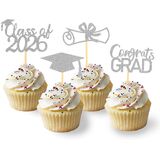 Package: the package contains 24 pieces of 2025 graduation cupcake toppers in 4 styles, 6 pieces for each style, including grad cap, diploma, "Class of 2025" and "Congrats".