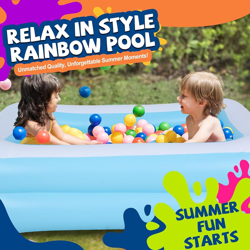 - ⛱ Easy to set up with air inflation, then pour in water to enjoy the cooling.