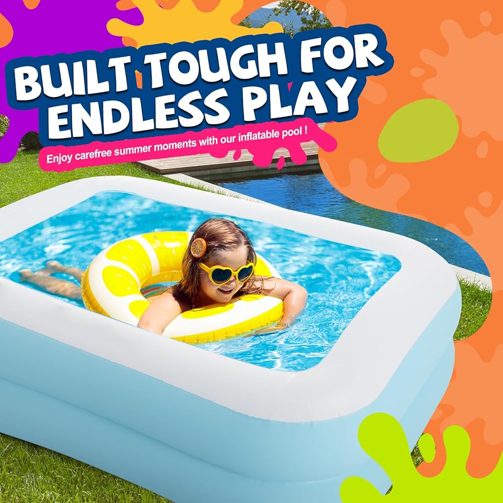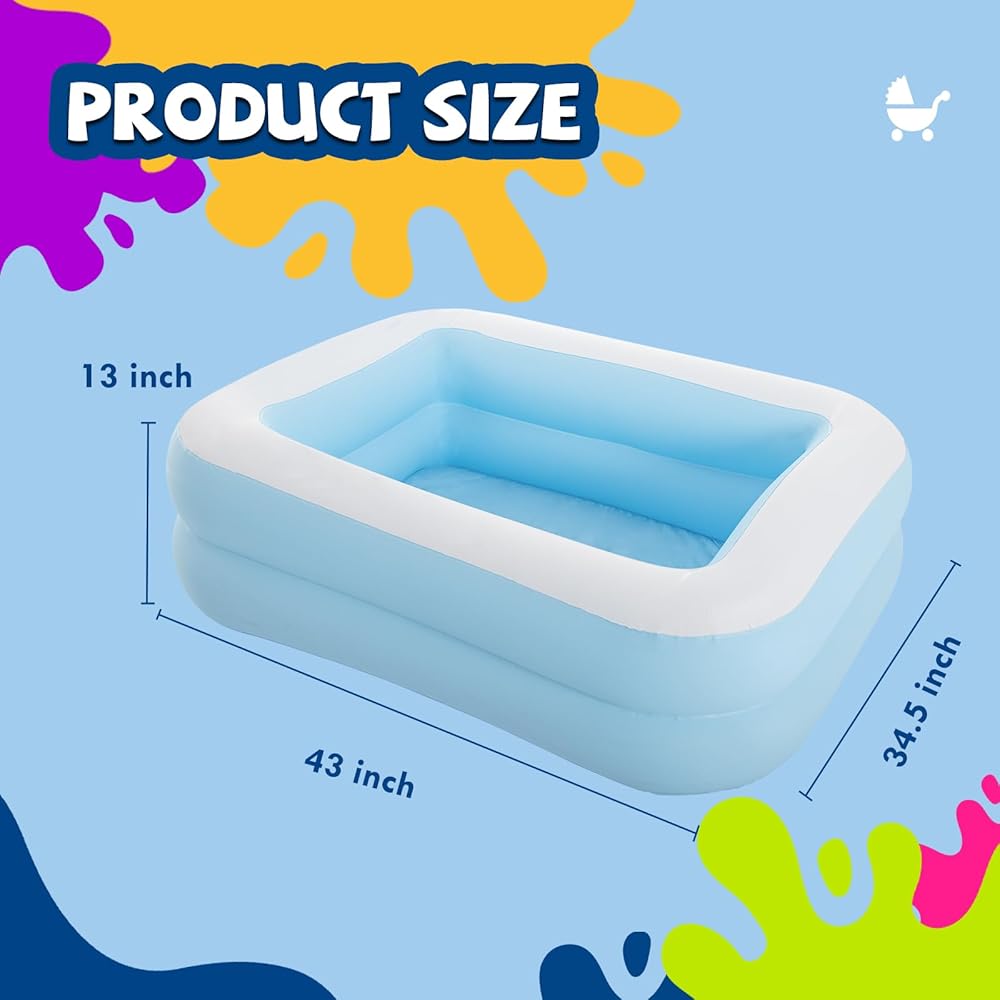Inflatable Swimming Pool for Kids Outdoor Ground Rectangular Kiddie Pool (Max 43x34.5x13 Inch)