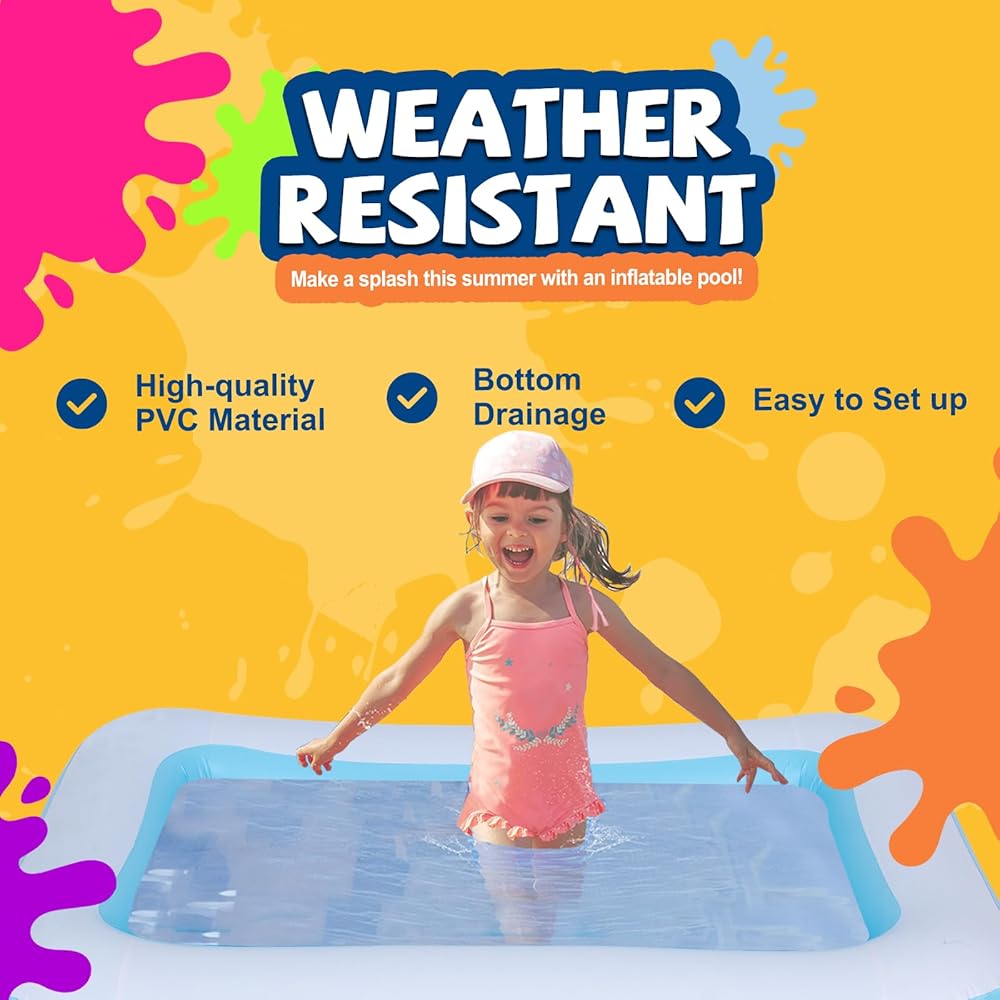 - ⛱ Easy to clean,easy to move, reusable,perfect for children to play with water and for adult parties in garden.