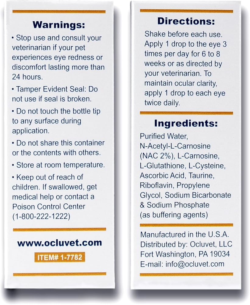 Supports Pet Eye Health – OcluVet Eye Drops have been trusted by pet owners to support the eye health of dogs, cats, horses, birds, seals, and more! From clearer vision to overall eye comfort, these drops are designed to give your pet the very best care, no matter what kind of companion you have.