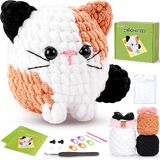 😺【All-In-One Crochet Starter Kit】Auspicious beginning 3pcs cats crochet kit for beginners comes with everything you need to create adorable crochet animal kit: 3pcs cats l pattern. 2 basic crochet manual, 6 different colored yarns, 1 needle, 4 eyes, 5 stitch markers, 2 crochet hook, 1 sessor, beginner's step by step video and stuffing. As packaging all the necessary tools together in giftbox. It's save much time and effort to search for each component individually.