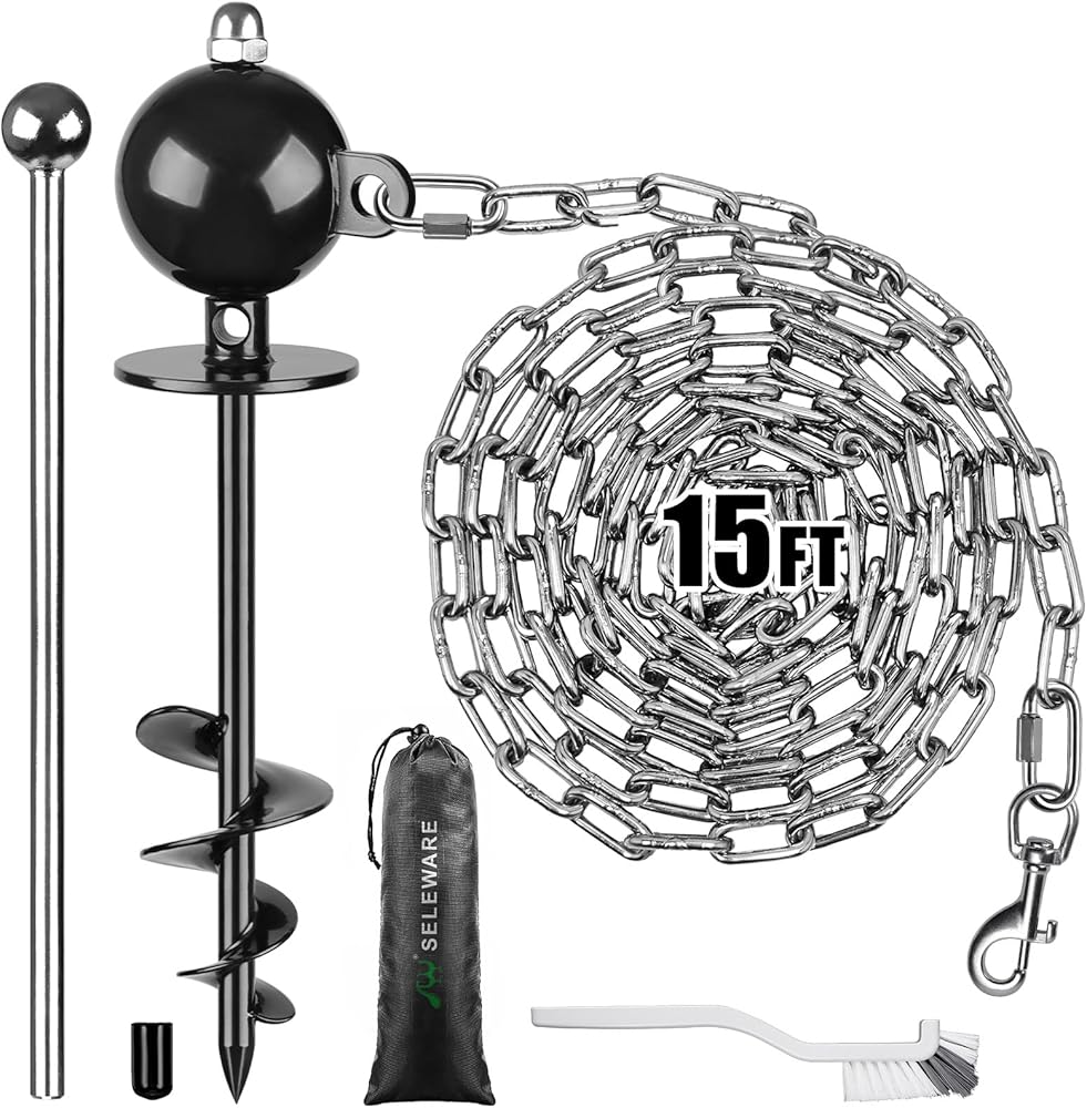 【Multi-Purpose Use】Not just for dogs—this heavy-duty ground anchor can also secure your greenhouse, trampoline, tent, RV awning, swing set, and more.