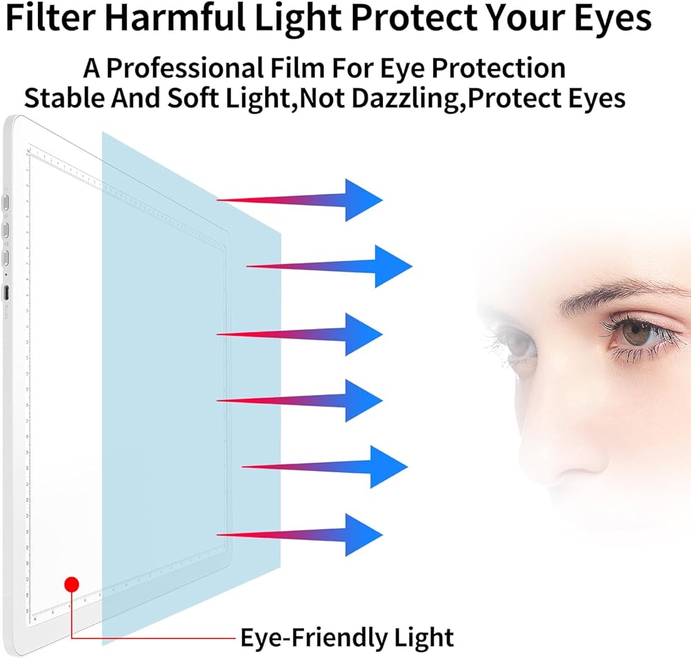 【3 Light Color Modes and 6 Levels/Stepless Dimming】This lightpad supports 3 colors of white light, natural light and warm light. Each lighting mode has 6 brightness dimming options. By shortly press the physical button to choose 6 levels brightness OR by long press the physical button to stepless adjust brightness. The Drawing Lightbox MAX brightness reach to 5400 Lux in the surface, which is great tool for cricut weeding vinyl. The light is even, non-glaring, no more eye fatigue when painting.