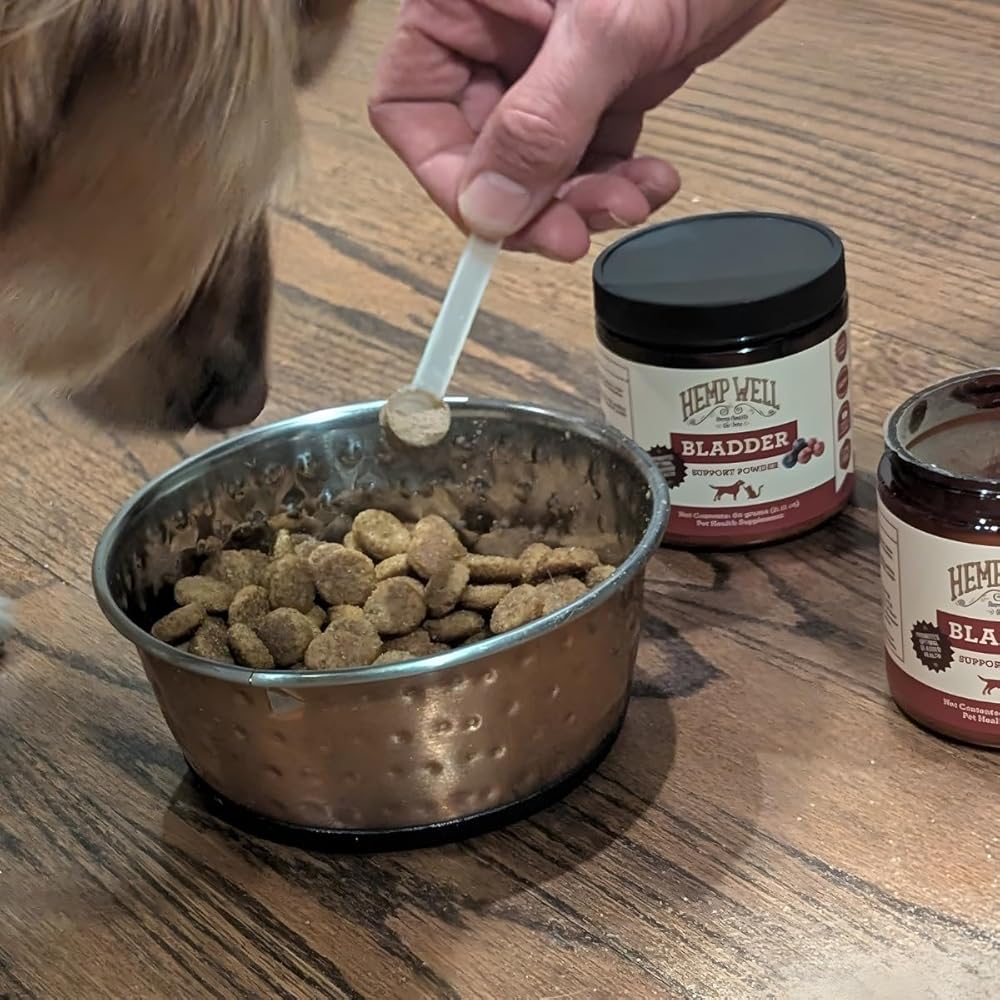 Enhance your pet's urinary health with Hemp Well's Bladder Support Powder, specifically designed for dogs and cats. This premium supplement, made with organic hemp and real cranberries, contains powerful ingredients like D-Mannose, Uva Ursi, and Glucosamine HCl to support normal bladder function, pH balance, and overall urinary tract health. It aids in reducing crystal formation and promotes comfort for your beloved pets. The powder is GMO-free, with an optimal ratio of Omega 3 and 6 fatty acids, and contains no filler or carrier oils. It is 3rd party lab tested and verified with seed to sale tracking, ensuring the highest quality. Available in various forms, including oils, soft chews, powder, and capsules, this product is free from THC, making it non-psychoactive. Give your pets the bladder support they deserve, naturally.