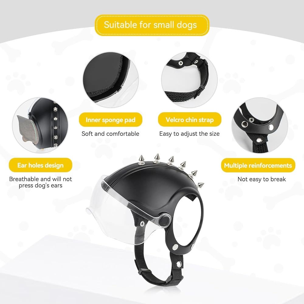 PETLESO Small Dog Helmet, Pet Motorcycle Helmet with Ear Holes, Adjustable Pet Safety Hat with Flip-Up Clear Visor, Small-Medium Puppy Heads Protection, Spiked