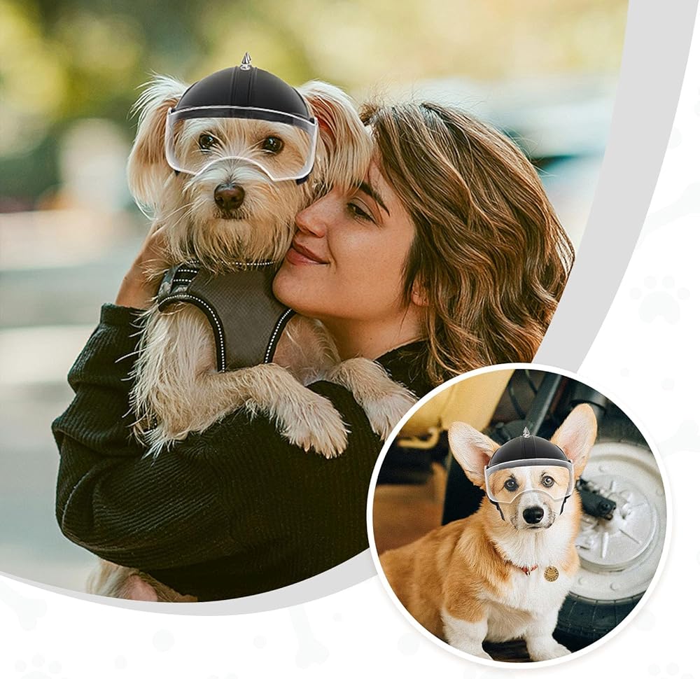 Head and Eye Protection: Cool 2-in-1 helmet can give your furry baby the protection they deserve, if you enjoy outdoor adventures with your pets or riding motorcycles/bicycles/skateboarding sessions/Mountain trails/Crowded festivals. Using safety hat for pets with poor vision can prevent them from hitting tables/walls/branches, etc.