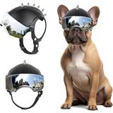 Dog helmet with clear goggles: PETLESO Small Dog helmet is composed of a hard ABS shell and transparent UV resistant glasses. 3/4 drop-down sun shield device, can be pulled up or down as needed, wide field of view, better air circulation.