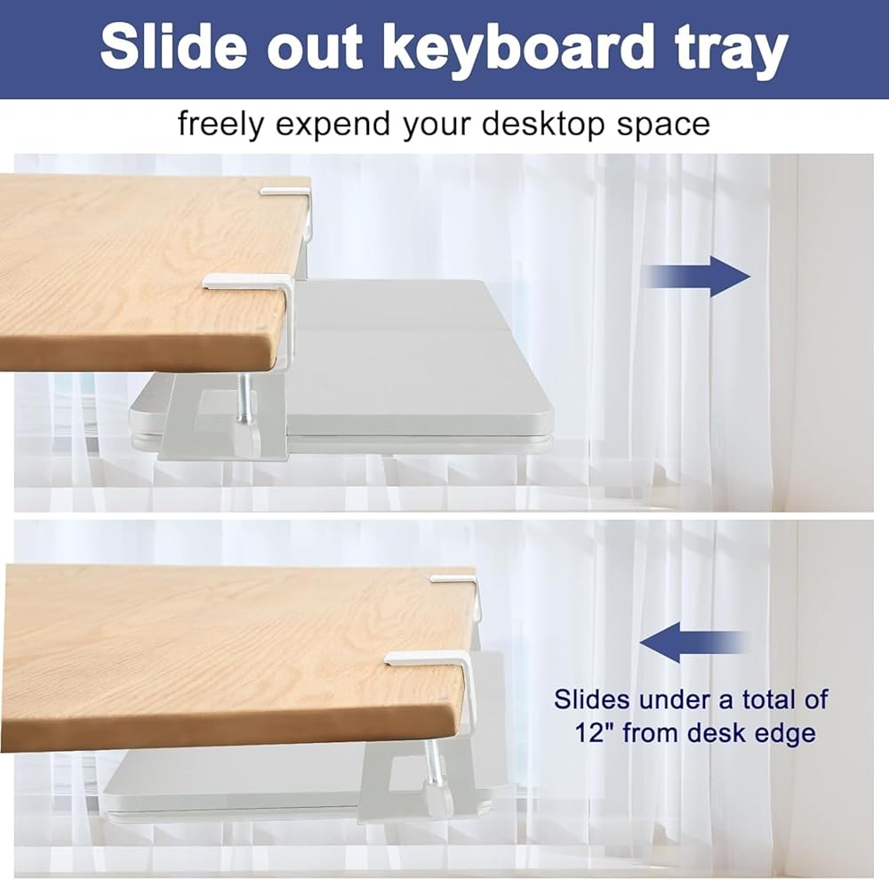 [Ergonomic Benefits] - The desk clip keyboard tray is designed to elevate the keyboard and mouse to a more ergonomic height, reducing stress on shoulder and neck muscles; eliminating potential stress on the wrists; encouraging proper posture and allowing proper viewing distance.