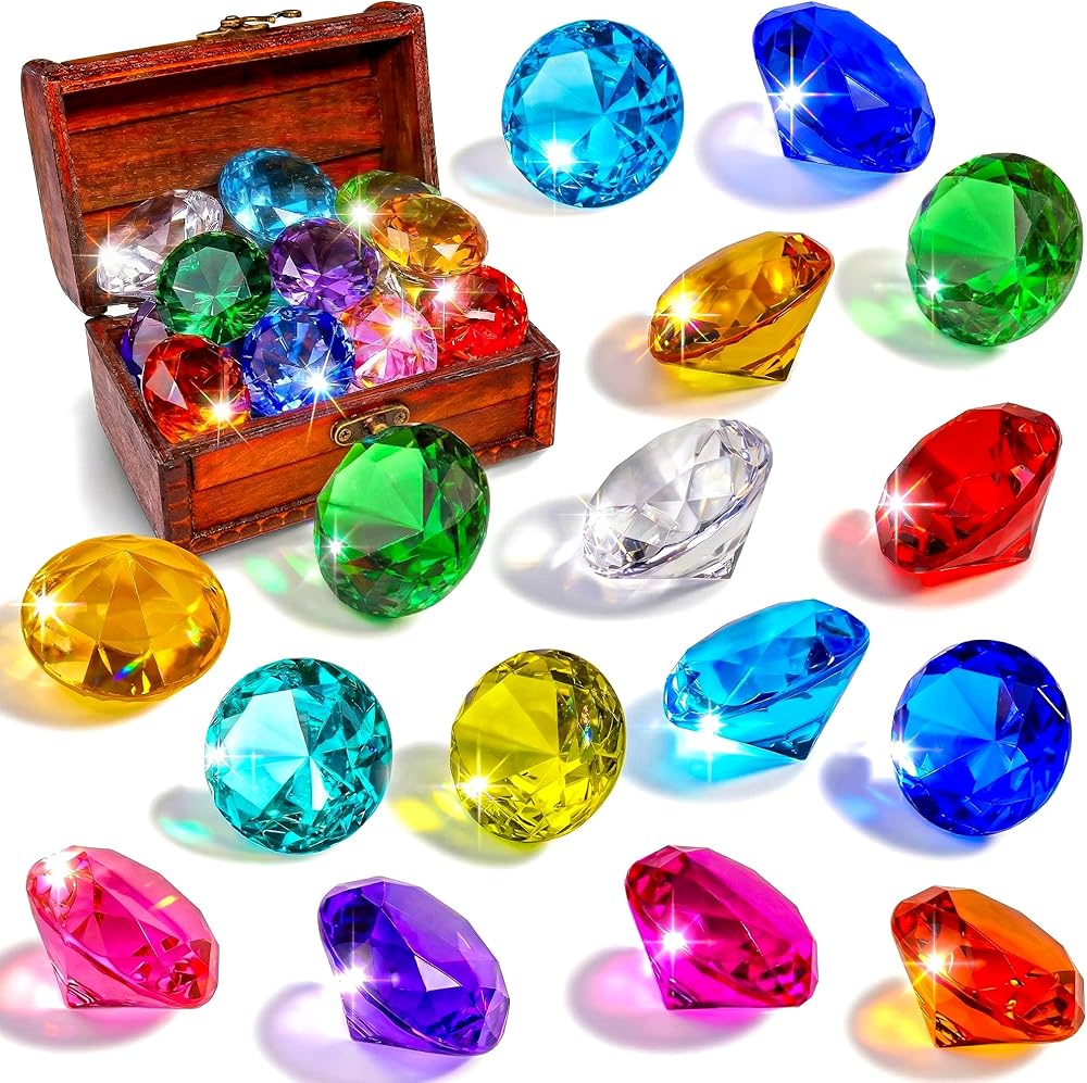 MGparty Diving Gem Pool Toys 16 Big Colorful Gemstone with Pirate Treasure Chest for Kids Water Pool Games Swim Dive Toy Party Decoration Summer Diving Training Gift