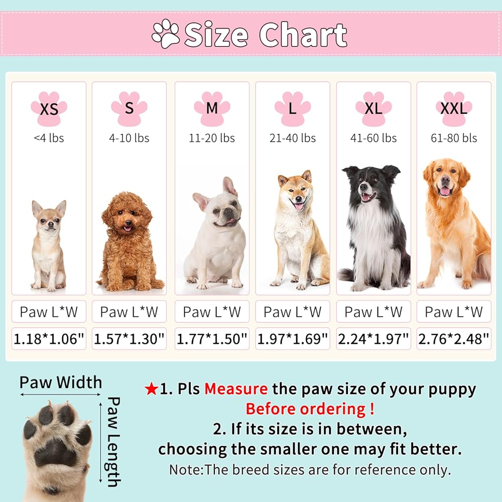 【Pls NOTE】To make sure your dog doesn't get hurt when removing the Dog Paw Stickers, you can soak and wet its feet with water for a while so that it will be easy to peel off. Likewise, water, oil and dust weaken the adhesive strength of the pads, so avoid them will make the pads last longer.