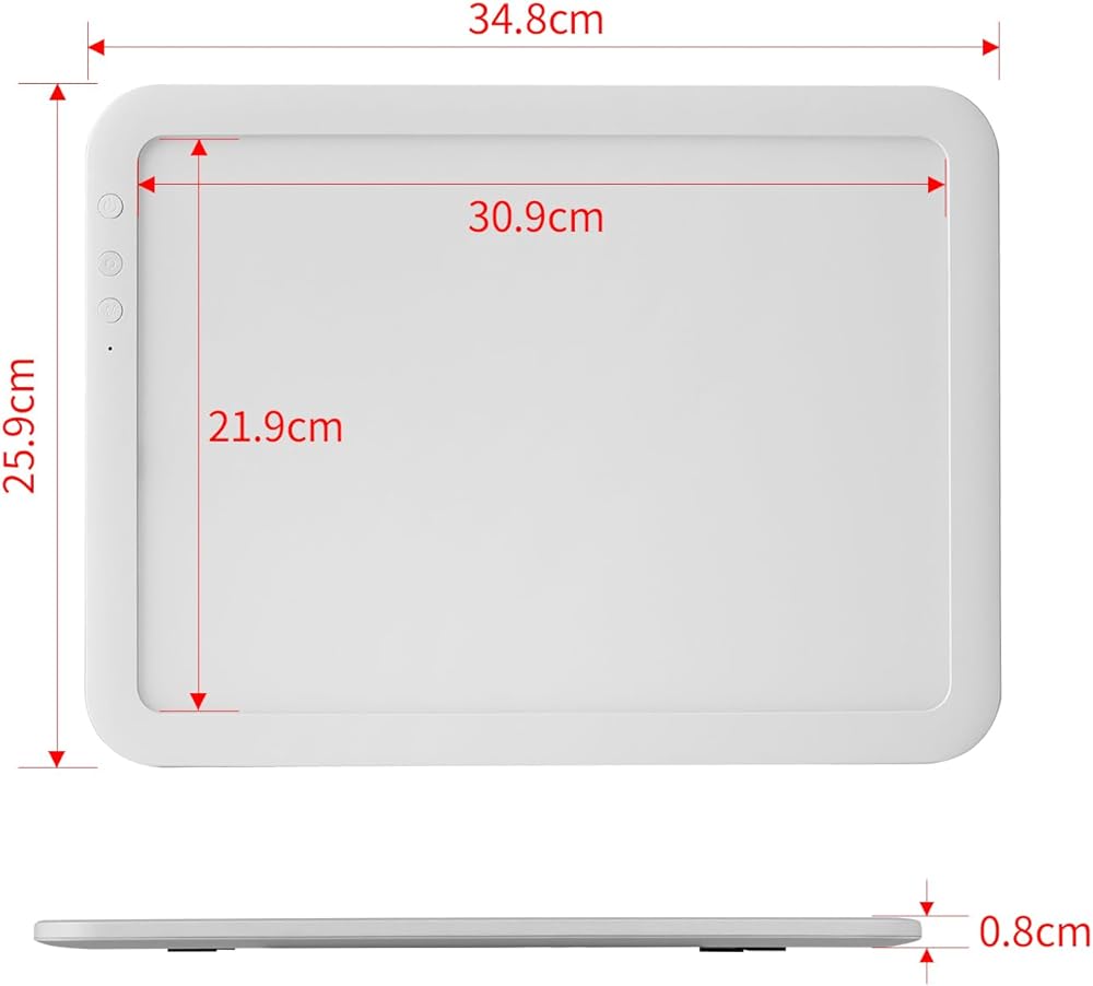 【 Super Bright Pad, 6-Level/Stepless Adjustable Brightness 】 By shortly press the physical button to choose 6 levels brightness OR by long press the physical button to stepless adjust brightness. The Drawing Lightbox MAX brightness reach to 8860 Lux in the surface, which is great tool for cricut weeding vinyl.