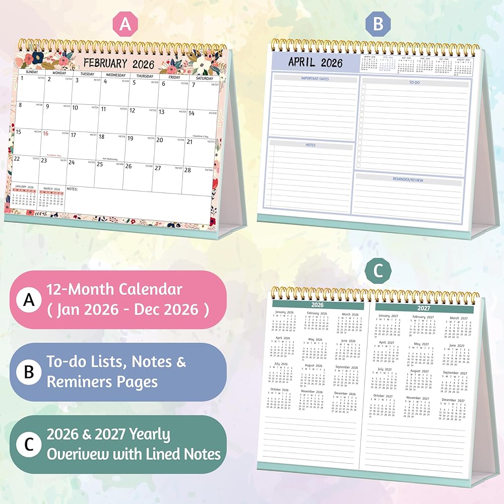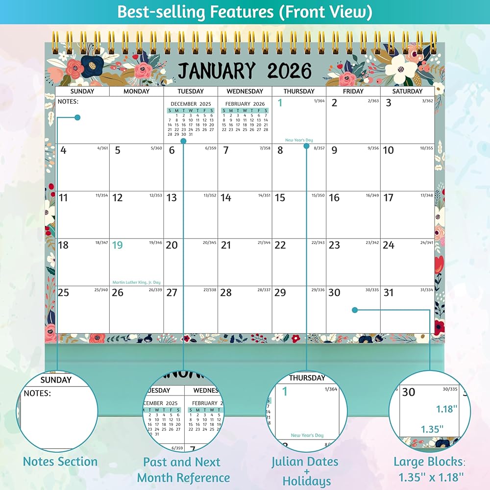 🌺 2025-2026 DESK CALENDAR – July 2025 – December 2026 (10'' x 8''), this standing desk calendar 2025-2026 covers 18-month calendar with 2-sided planning pages for easy organizing. Plan ahead and manage your life more efficiently with this versatile calendar!