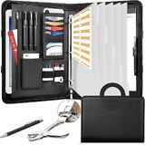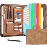 Leathario Portfolio Binder, Includes 5 Folder Index Dividers, 13 Inch Tablets Organizer with Handle, Vegan Leather A4 Padfolio, Multi-Pocket Notepad Business Planner Professional Document