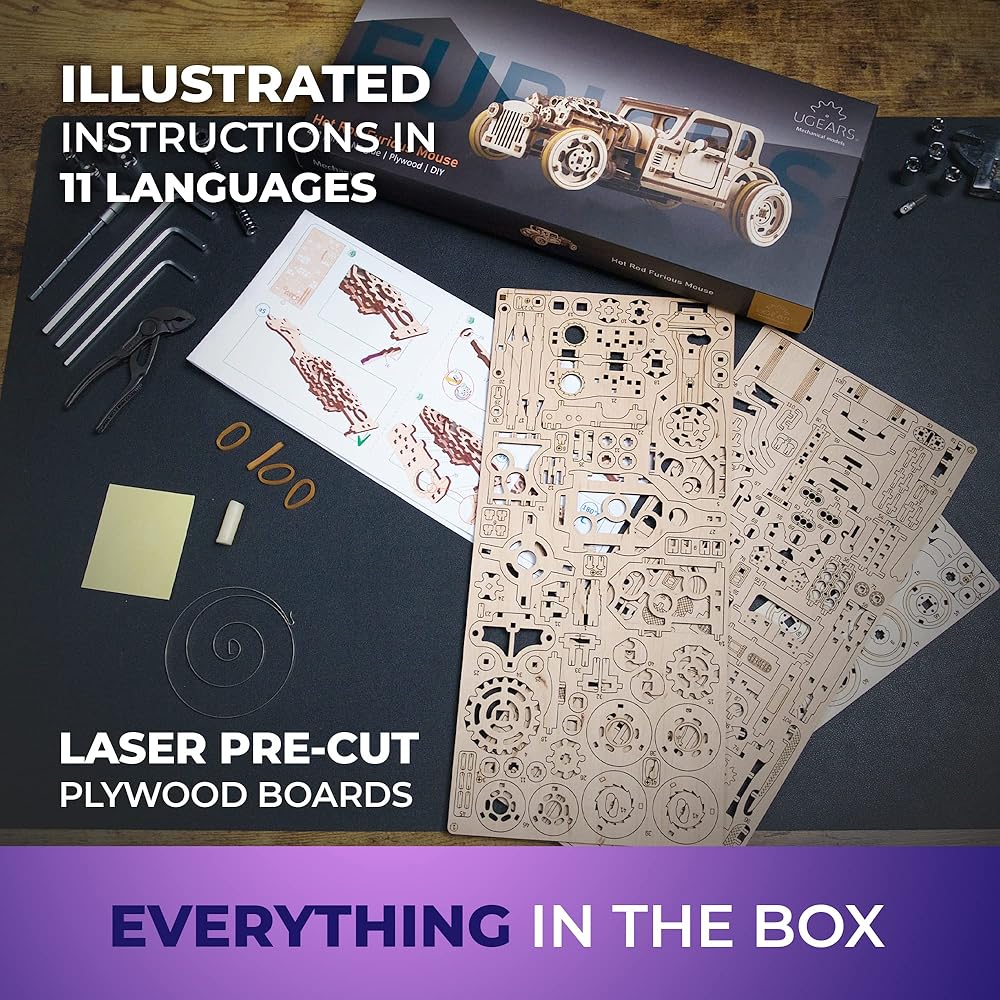 Everything in the box: No extra tools or glue are needed to assemble UGEARS engineering toys and DIY projects for adults. Illustrated, step-by-step instructions will keep you on track