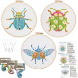 Louise Maelys 3 Sets Beetle Embroidery Kits for Beginners,Cross Stitch Kit for Adults,DIY Needlepoint for Starters Including Flowers Pattern, Hoop,Instruction and Threads