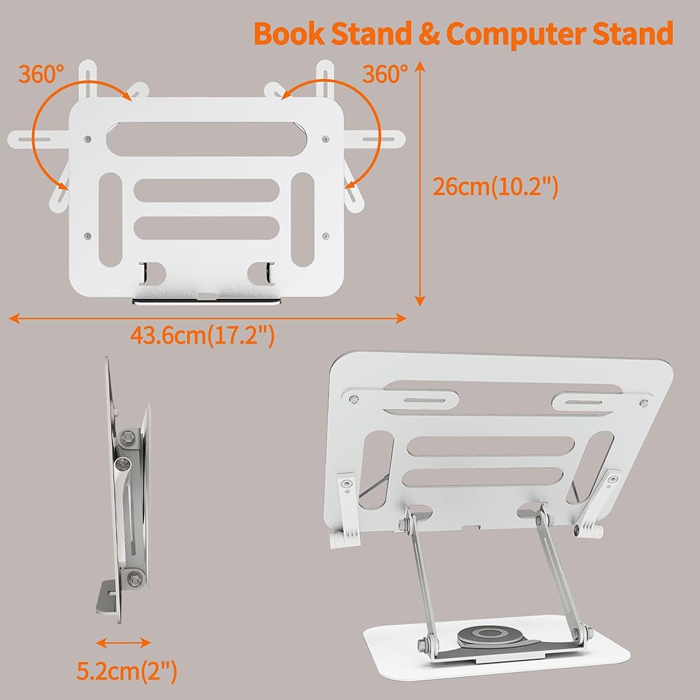 Luxdecor Metal Book Stand for Reading Adjustable-Book Holder with 360°Rotating Base & 2 Page Clips, Display Stand for Recip,Book Reading, Cookbooks,laptops,Big Musical Score (Foldable Design)