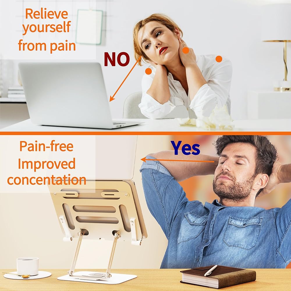 【considerate design To Aid Relaxation】:To elevate your reading experience, the holding boards generously sized to accommodates a variety of materials, from textbooks to music scores. 360°rotation Aluminum alloy base help you to adjust the angle. Adjustable levation Stands could be adjusted to the angle and height you like, reducing strain on your neck, shoulders, and back. Say goodbye to hunching over books and enjoy reading in a more relaxed and ergonomic position