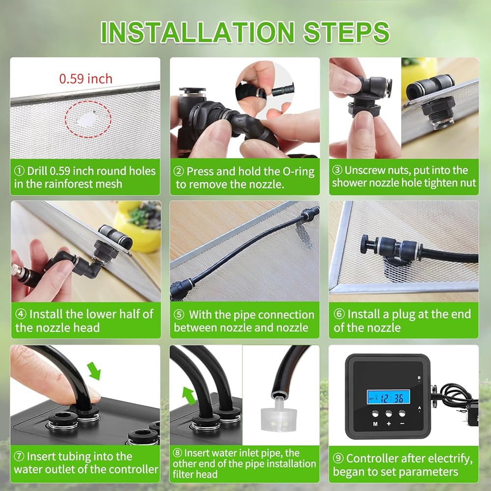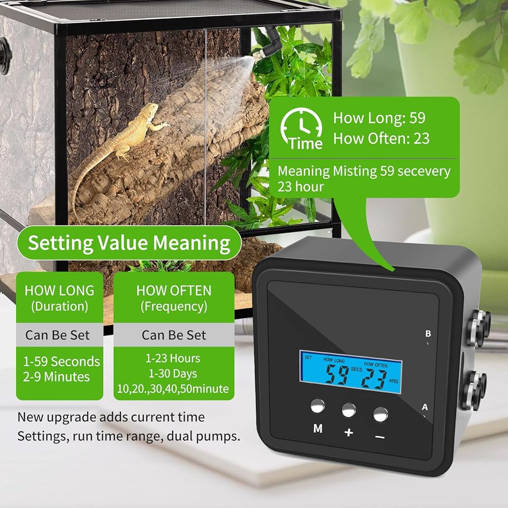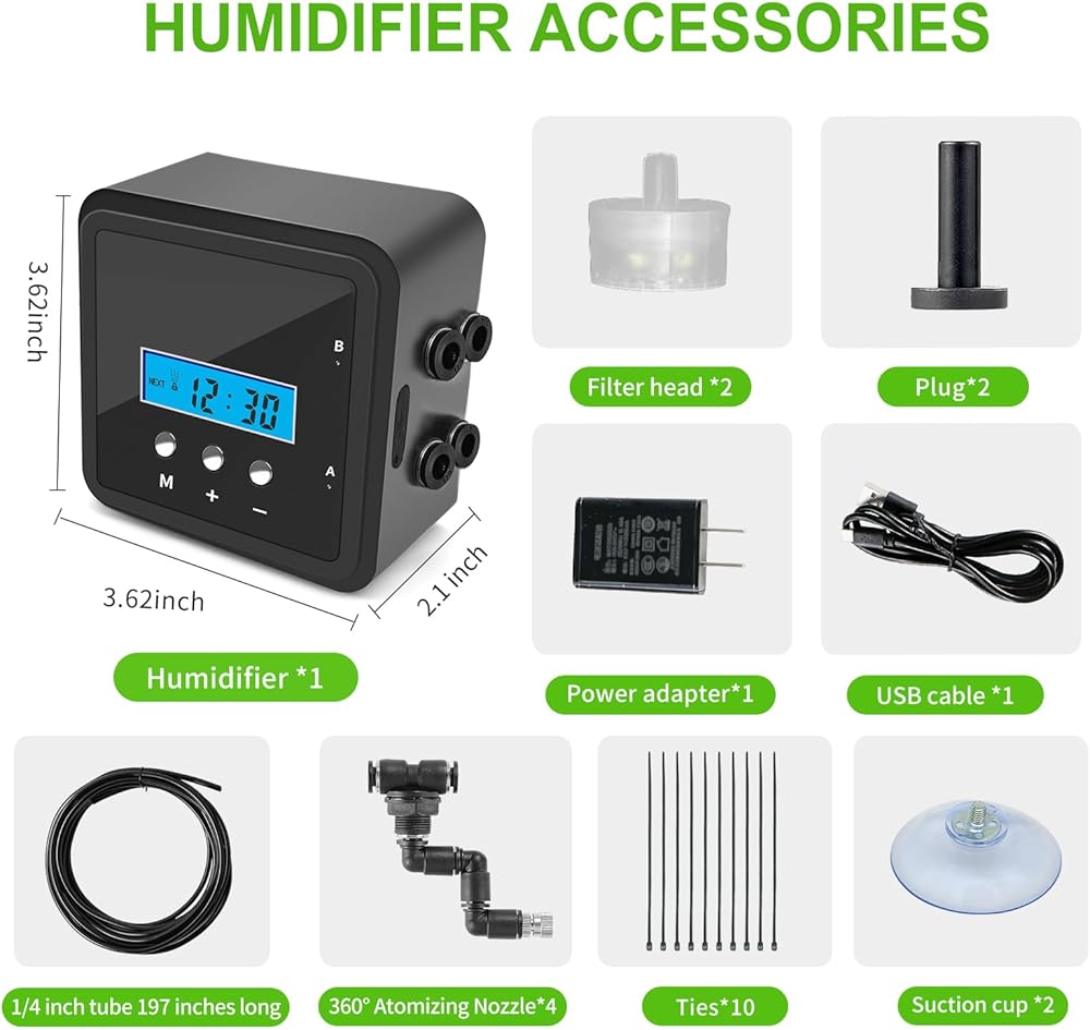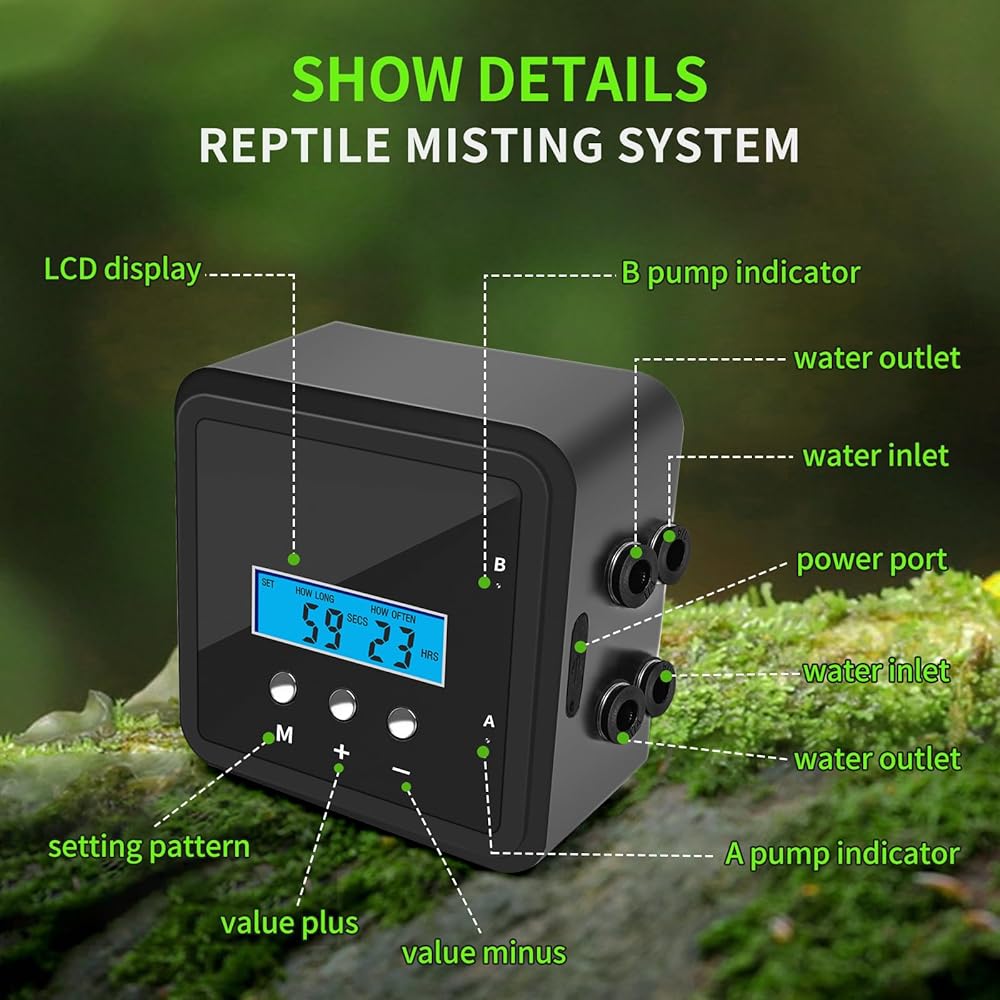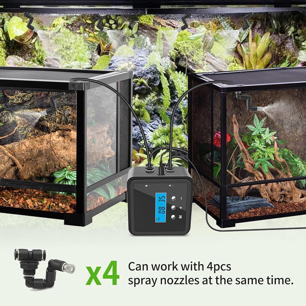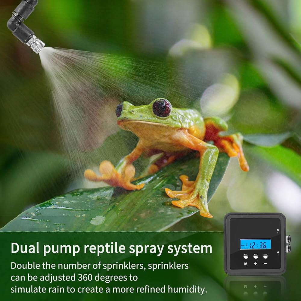 1. Fine Mist Spray: Rainforest Vibes for Your Pets! Produces a delicate mist that mimics natural rainforest conditions, perfect for reptiles, amphibians, and tropical plants. Say goodbye to dry habitats and hello to a thriving ecosystem!