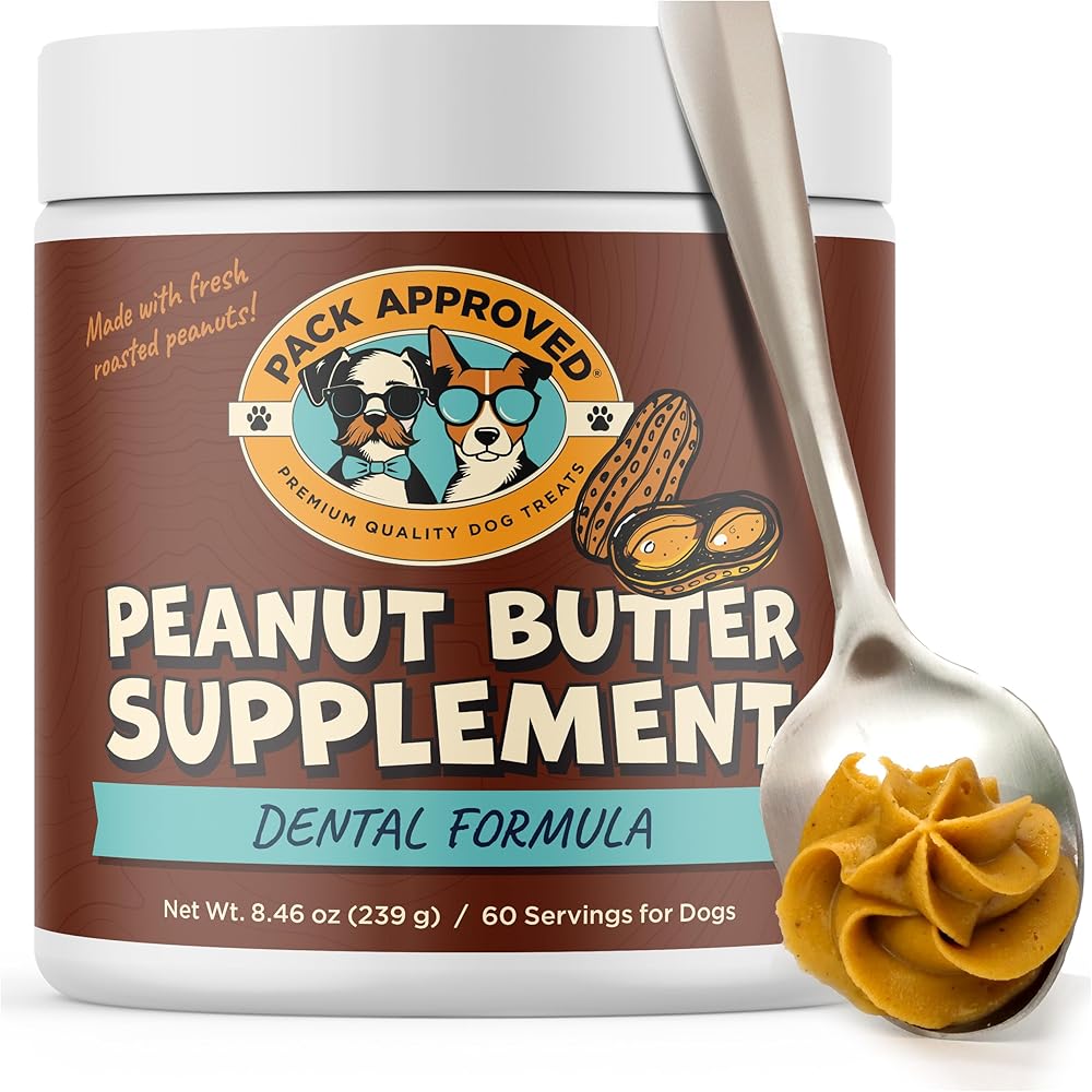 Pack Approved Dog PeanutButter is a delicious and nutritious way to support your pup's health. Made with high-quality ingredients, this tasty spread is enriched with dog probiotics for digestive health and prebiotic for dogs, helping to promote dog gut health, balanced digestion, and immune support. Whether your pup needs relief from dog diarrhea, dog constipation, or a dog food sensitive stomach, this formula is designed to help maintain a happy tummy and overall well-being. This peanut butter for dogs safe is ideal as a daily treat or a dog food supplement to support digestion and nutrition. It's a great option for dogs with sensitive stomachs, providing natural dog upset stomach relief while delivering a flavor they love. Use it as a puppy probiotic, a dog peanut butter food topper, or a spreadable dog treat for lick mat sessions. It's also ideal for training, stuffing into toys, or simply serving as a spoonful of goodness. With its smooth texture and delicious taste, this all natural peanut butter for dogs makes every snack time both fun and beneficial. Give your furry friend a treat that supports their health while keeping their tail wagging!