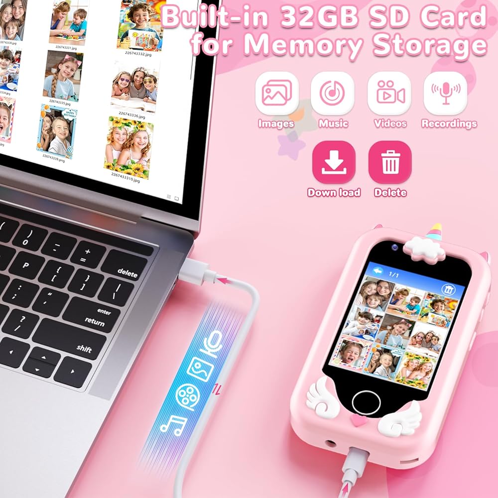 Perfect Gifts for Girls : This Kids Smart Phone is perfect for birthday, Christmas, festival, or holiday gift for boys aged 3-8. Easy for toddler to capture photos and share moments safely. And the cute unicorn silicone phone case, it can prevent accidental drop damage no matter at home or on the go