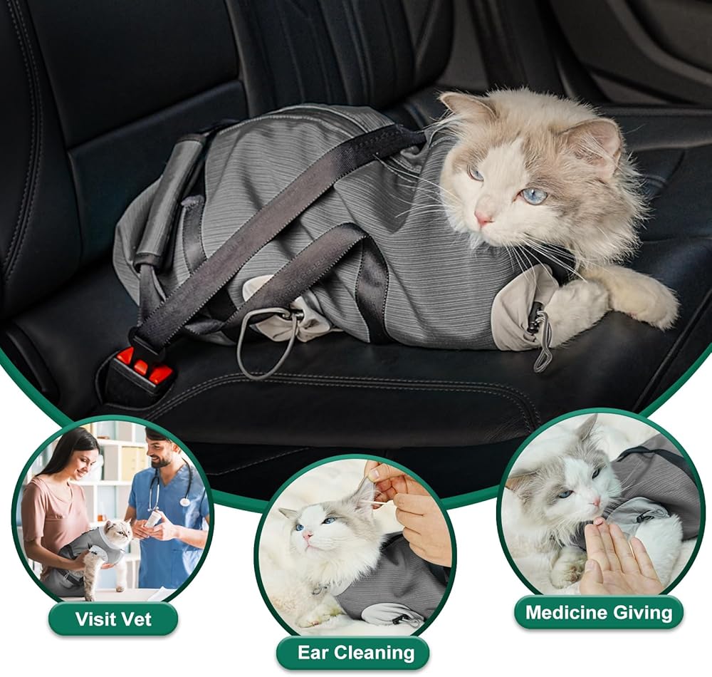 Comfort& Anxiety Relief: With adjustable openings for the cat's legs and head, this cat restraint bag accommodates cats of different sizes and preferences. Let your cat stick its head out to satisfy curiosity and reduce anxiety or keep them cozy and secure inside—ideal for cats who prefer to hide or explore