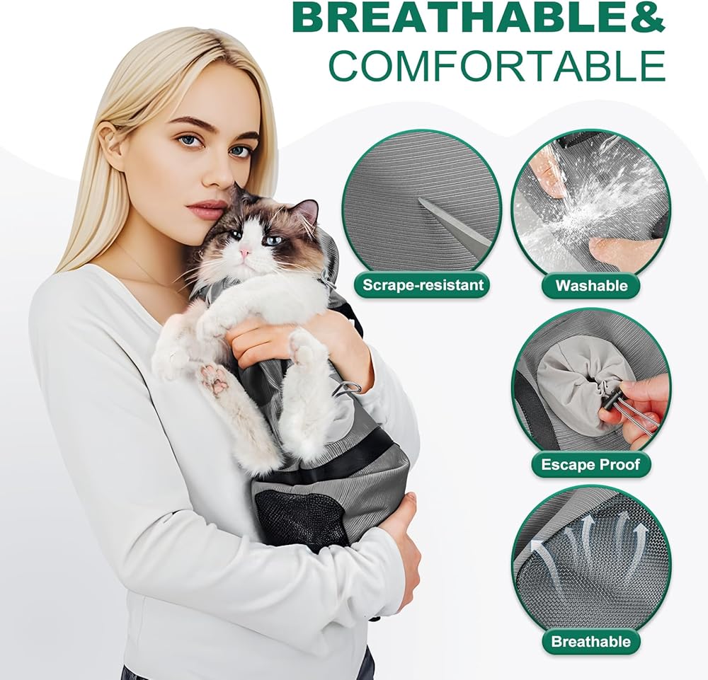 Easy to Use & Secure: Zipper closure for quick and easy cat placement, and adjustable drawstrings at the paws and head provide a snug fit, preventing escapes and keeping your cat comfortable during vet visits, grooming, or travel in this secure cat travel carrier
