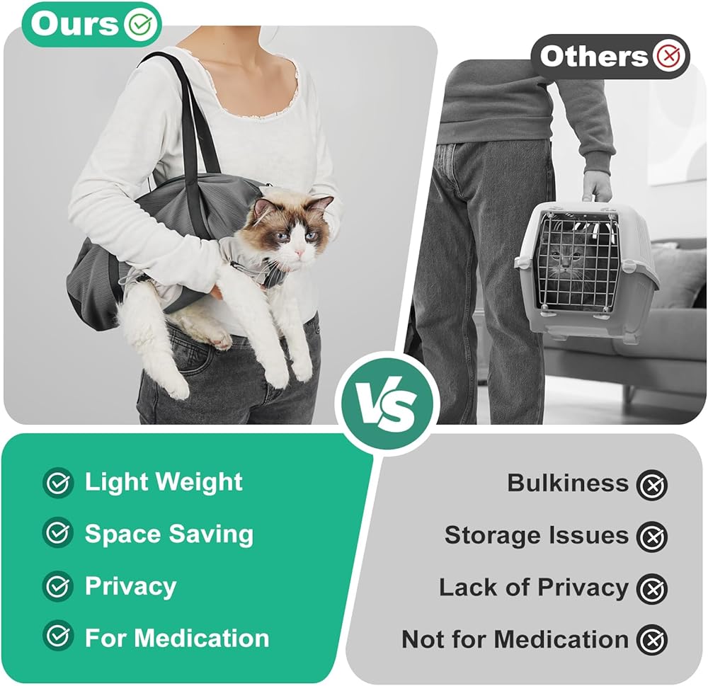 Multi-Purpose Cat Bag: This versatile bag doubles as a cat carrier and a grooming bag, suitable for nail trimming, giving meds, vet visits, and dental care. One solution for all your cat's grooming and outing needs