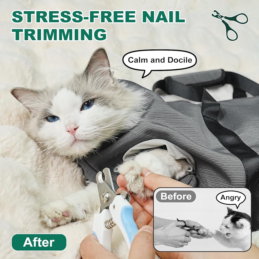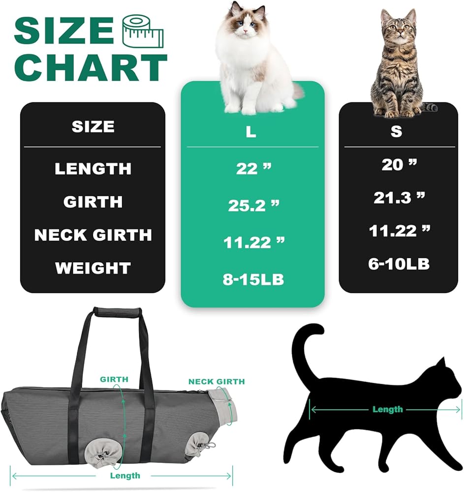 Scratch Prevention & Safety: A must-have for every cat owner, this cat bag for nail trimming helps reduce the risk of scratching during grooming tasks like nail clipping. Available in two sizes: S (6-10lbs) and L (8-15lbs), making it suitable for most cats