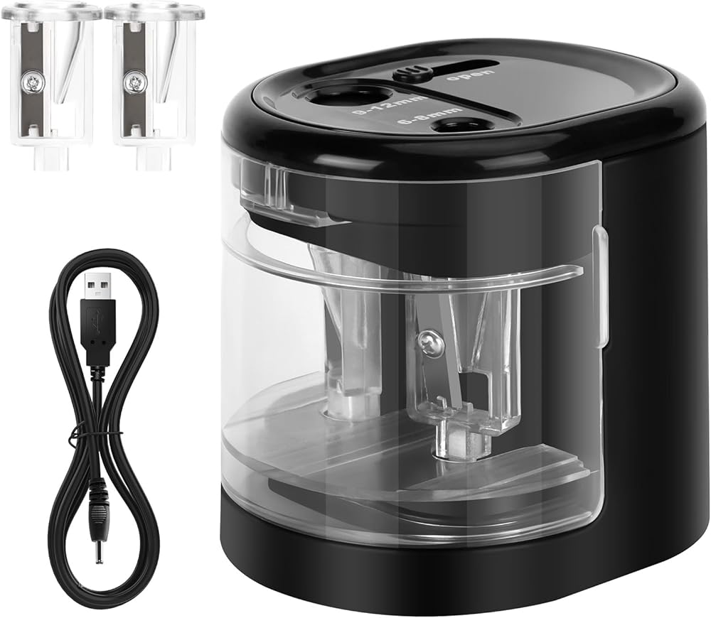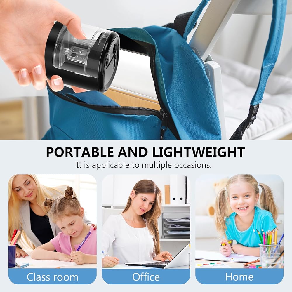 Dual Hole Design – Designed with two sharpening holes to fit 6-8mm and 9-12mm pencils, making it perfect for standard, jumbo, and colored pencils.