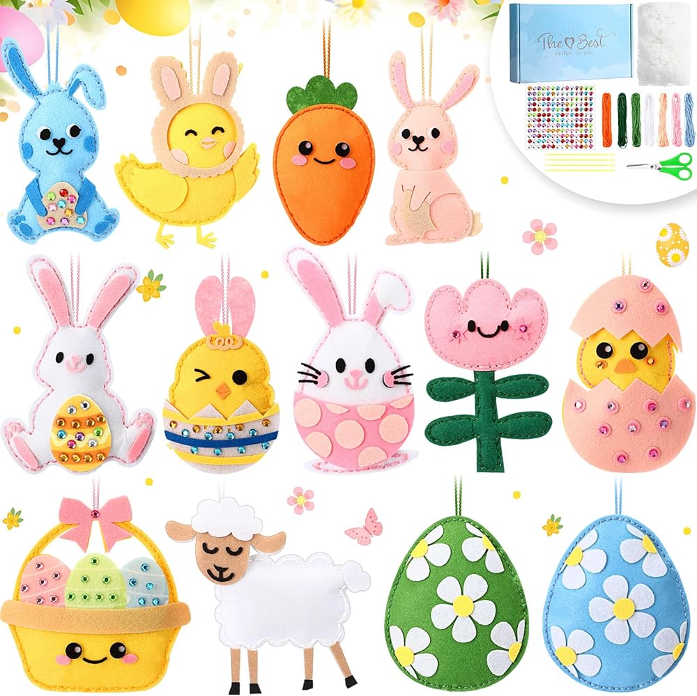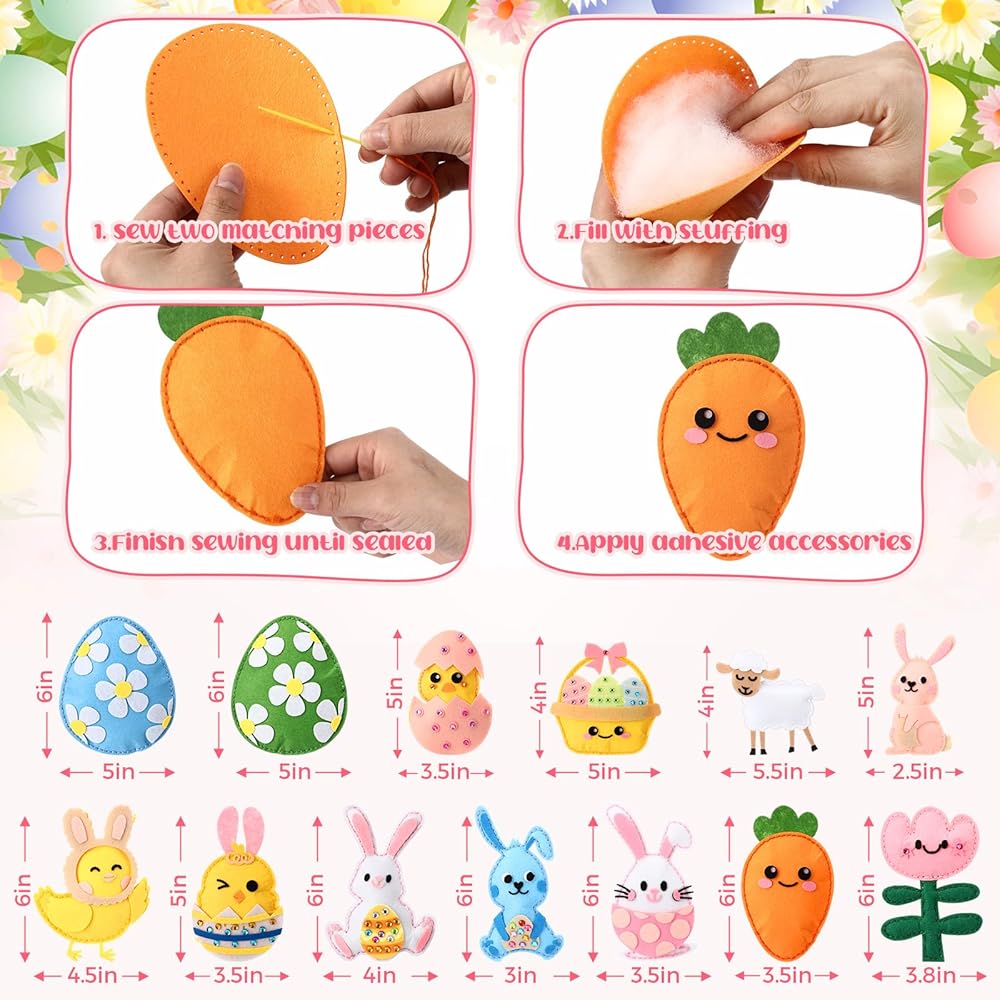 13 Pcs Easter felt pieces and sewing accessories